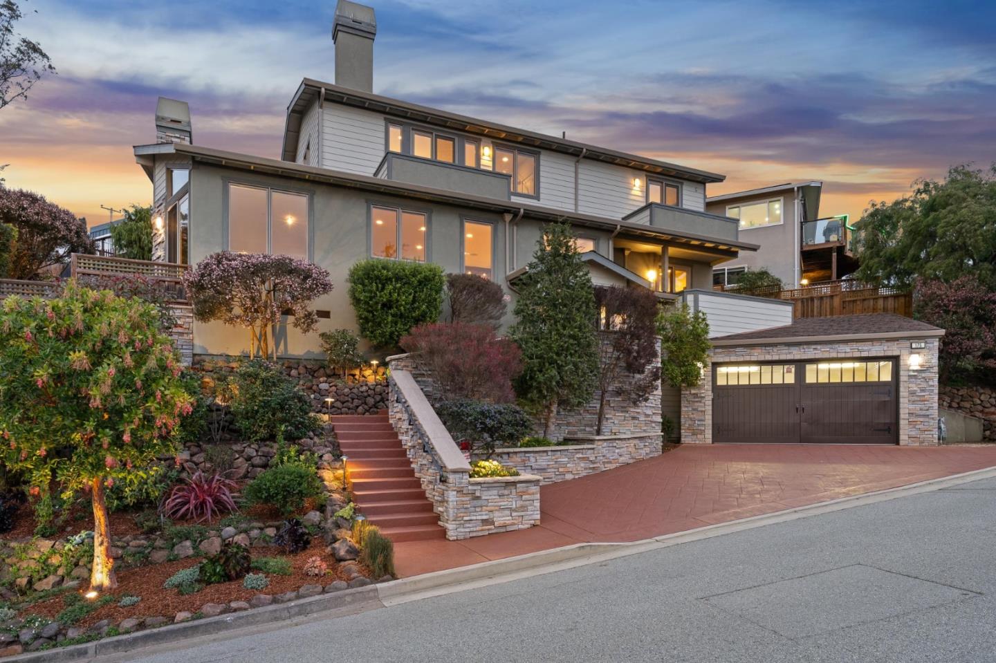 Outstanding custom-built home nestled in the coveted El Granada Highlands. This home offers 3 bedrooms plus a versatile room perfect for a den or office, and 3.5 bathrooms across 2,640+/- sqft of luxurious space on a 6,053+/- sqft lot. Enjoy breathtaking ocean and harbor views from the open-concept great room and all bedrooms, each featuring private decks. The great room boasts vaulted ceilings and a step-down living area with a cozy fireplace, complemented by radiant heated walnut floors and abundant natural light. The chef's kitchen is a culinary dream, complete with a temperature-controlled walk-in pantry and built-in wine racks. A separate media room provides an ideal entertainment space. The downstairs bedroom includes an ensuite bathroom, while the upstairs primary suite features a fireplace, a cedar-lined walk-in closet with organizers, a 10-jet shower and a built-in Miele espresso machine. Additional amenities include a two-car attached garage with storage and an EV charger, skylights, and a private backyard. This coastal retreat offers easy access to Hwy 1 for all your Bay Area commutes and is a short distance from the beach, coastal trail and Pillar Point Harbor's shopping and acclaimed restaurants. This home is a perfect blend of modern luxury and convenience.