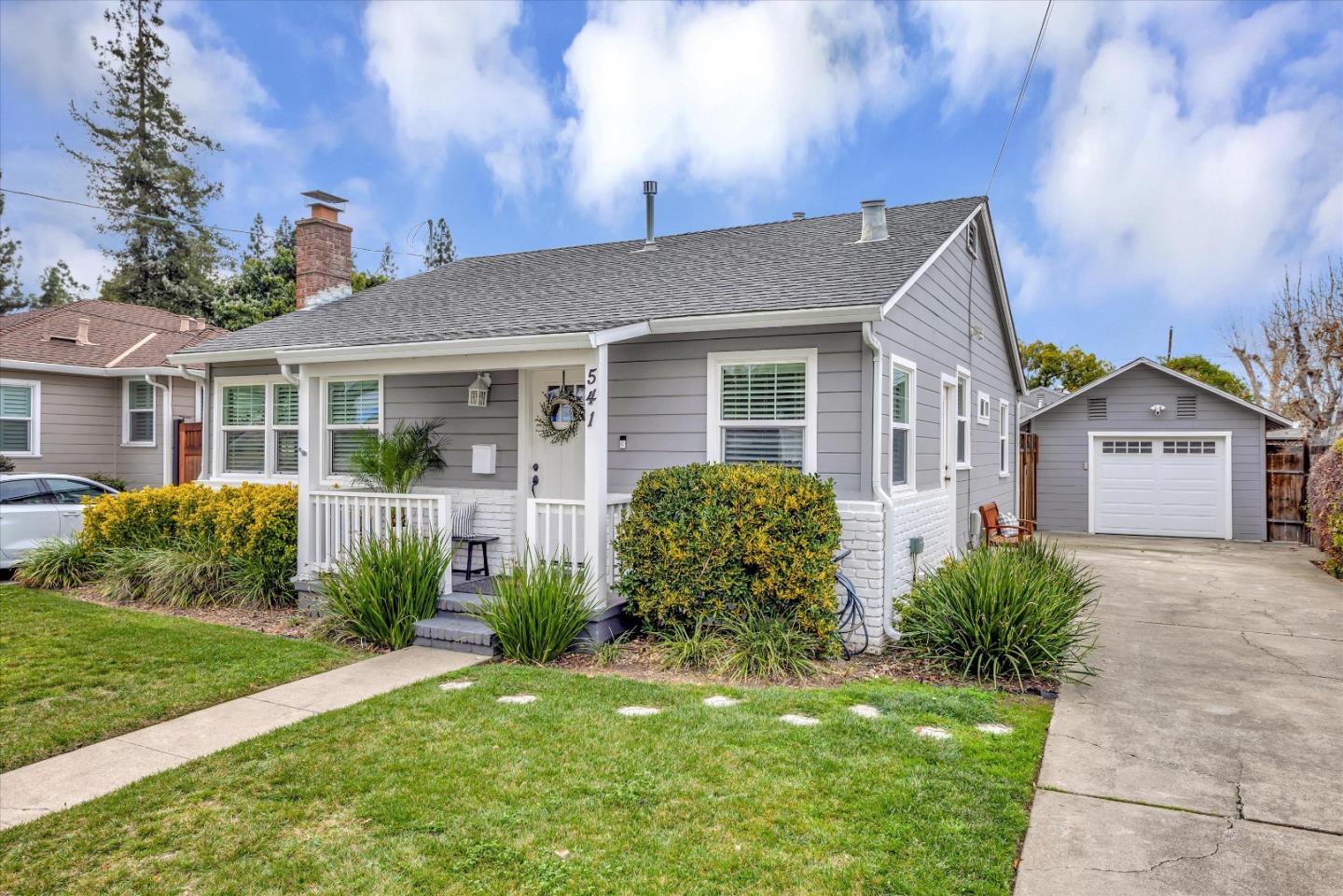 This move-in-ready bungalow is a true gem, thoughtfully updated to offer both style and comfort. The remodeled kitchen, complete with a gas range and custom-built dining nook with storage, flows seamlessly into the spacious living room, featuring a stunning statement fireplace. The cozy primary bedroom includes a custom closet organizer, while the versatile third bedroom has been cleverly converted into an interior laundry room/home office. Additional upgrades include recessed lighting, new doors, newer HVAC and water heater, upgraded windows with blinds, and so much more! The detached garage offers incredible bonus space, fully finished with sheetrock, insulation, attic storage, new garage and entry doors and window, and even a sink with hot/cold water, perfect as a dog wash station. The backyard is an entertainers paradise, featuring an outdoor kitchen with a built-in grill, BBQ, sink, wine fridge, and outlets. A large lawn with sprinklers, a clean paver patio, a fenced dog run with a storage unit, and a garden area complete this serene space. Located just minutes from freeways, shopping, and dining, this bungalow is the perfect blend of modern updates and dreamy charm.