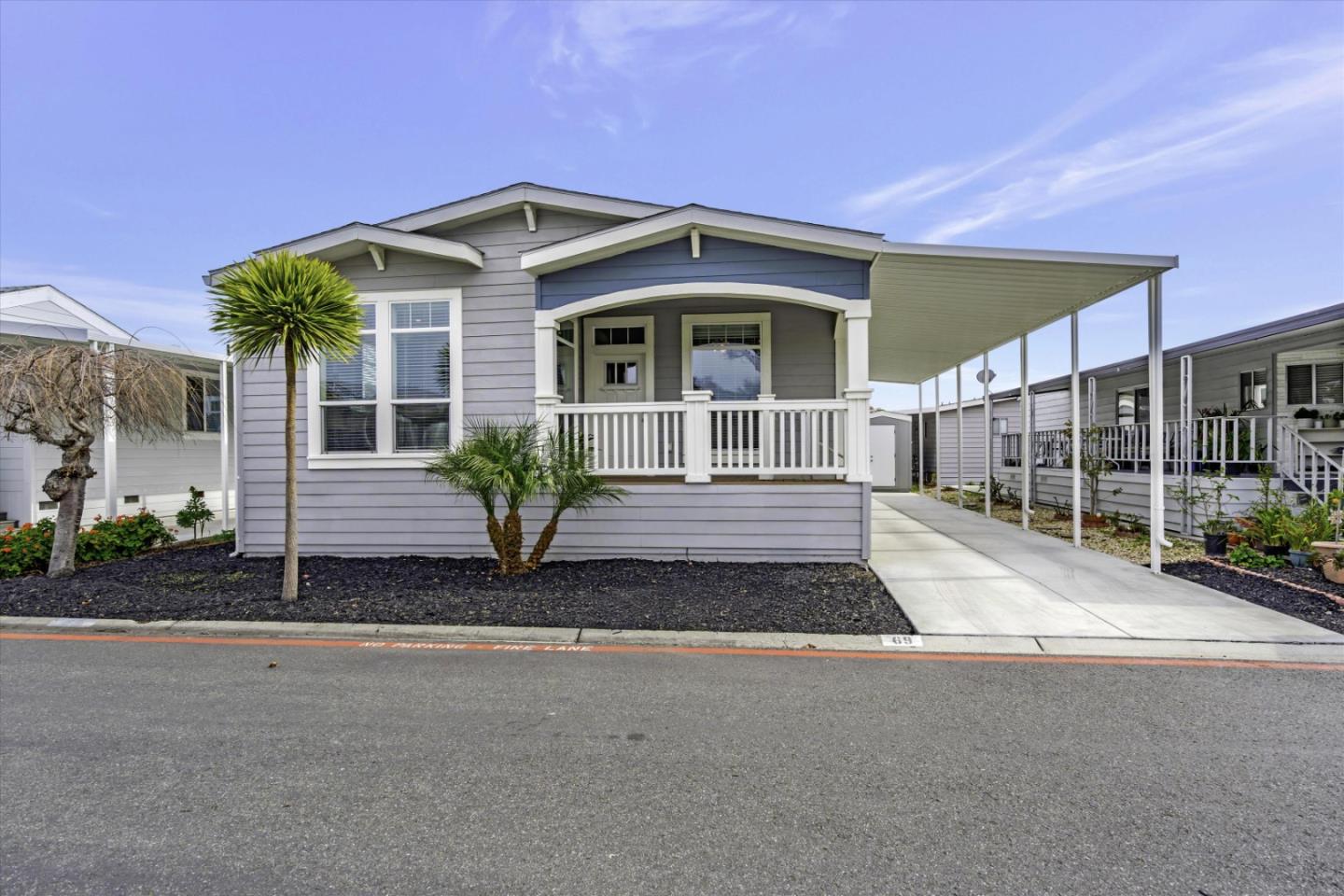 Welcome to Sunnyvale's most sought-after 55+ community! This 3-bedroom, 2-bathroom home is ready to be yours. With its charming, low-maintenance front landscaping, the home immediately welcomes you. Inside, you'll find an open-concept layout offering a spacious living area perfect for working, relaxing, and entertaining. Large dual-pane windows and skylights flood the home with natural light, creating a bright and airy atmosphere. The chef-inspired kitchen features sleek stainless steel appliances, beautiful quartz countertops, large center island, new built-in microwave, and ample designer cabinetry and pantry for all your storage needs. A few other highlights include: new carpet, laminate floors, crown molding, tray ceiling, AC, and a storage shed. The primary bathroom is a true retreat with dual sinks, a walk-in shower, and a generously sized walk-in closet. The two additional bedrooms are comfortable and provide great closet space. Plus, you'll love the convenience of being close to Mountain View, Santa Clara, and major highways 101, 237, and 85. Don't miss out on this incredible opportunity!