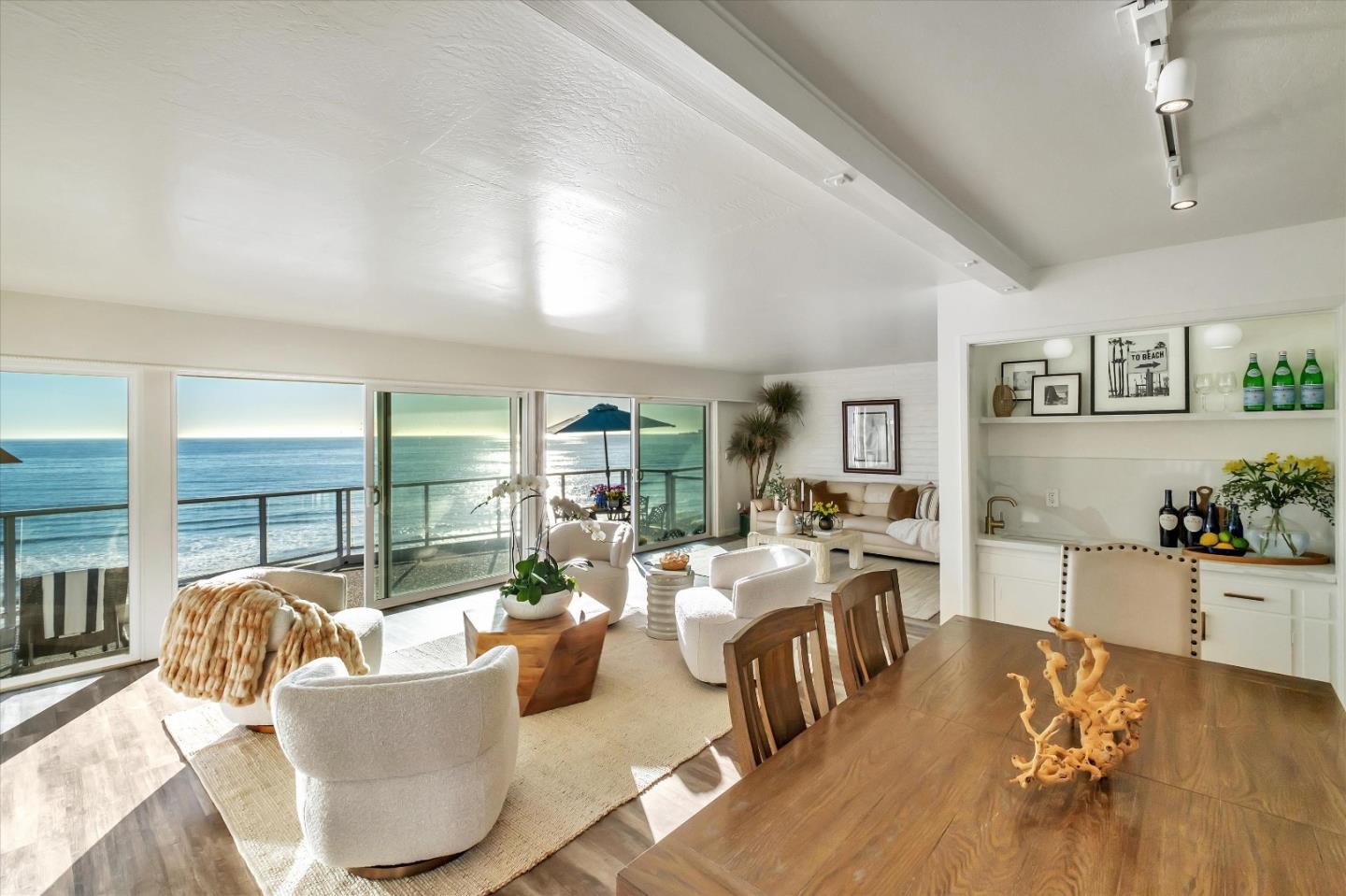 Unobstructed, panoramic ocean views from Santa Cruz to Monterey await you! This upscale end unit condo, is a first-time offering in almost 50 years! A rare opportunity to own a slice of coastal paradise with endless ocean vistas and vacation rental possibilities. Largest unit in the development adjacent to the crystal clear swimming pool. Imagine soaring beach views while listening to waves crashing every day of the week. Picture yourself viewing a breathtaking sunrise, then west again to savor the sunset. Be mesmerized by breaching whales & playful dolphins surfing the waves.The condo is indeed the largest in the complex, offering ample space and a beautifully remodeled kitchen, with gas stove & quartz countertops. The oversized patio sounds like the perfect spot for star gazing & relaxing evenings. Embrace the quintessential Rio Del Mar beach lifestyle! Enjoy leisurely walks, invigorating runs, or playful strolls along miles of white sand beaches, easily accessible from the condominium. Take your furry companion to frolic in the sand and waves, make new friends, and explore the vibrant beach promenade and coastal trails. Delight in the convenience of walking to the beach, nearby restaurants and cafes.