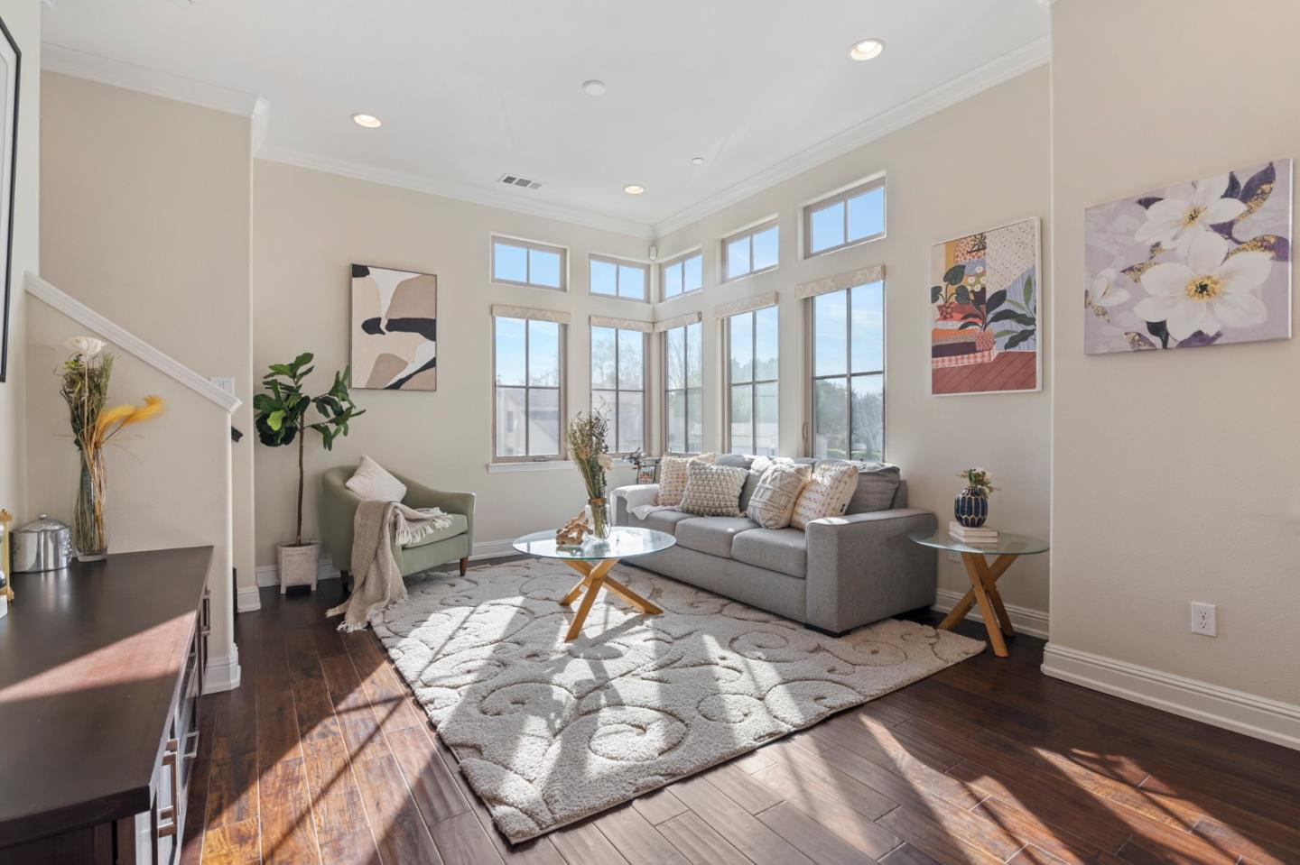 This bright and spacious END UNIT home is flooded with natural sunlight and boasts rare high ceilings on both the second and third levels, creating an open and airy atmosphere. The gourmet kitchen features premium finishes, including Quartz countertops, GE Monogram stainless steel appliances, and hardwood flooring throughout the second level. A private balcony on the second floor offers a perfect space for relaxation or entertaining. The home is packed with builder upgrades like marble in the master bathroom, upgraded cabinetry and tile in all bathrooms, and a convenient central vacuum system for easy maintenance. The two-car garage provides ample storage, and the washer and dryer are included. Located in the heart of Silicon Valley, youre within walking distance or a 5-minute drive from major tech companies like NASA, Microsoft, Amazon, and Google, as well as close to downtown Mountain View, Costco, and easy access to highways 101, 85, and 237.