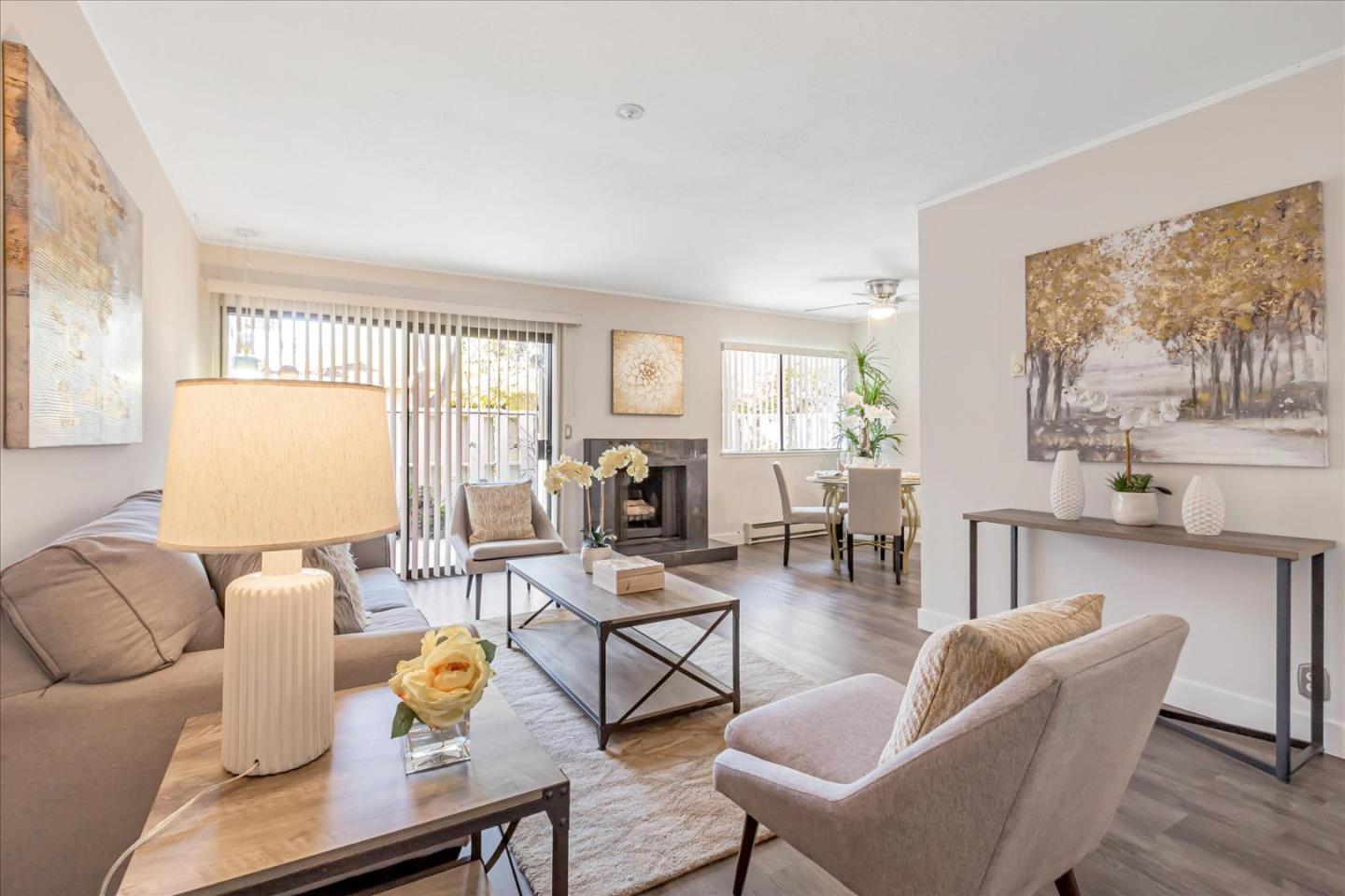 Great opportunity to own this beautiful condo as your primary residence, vacation home or rental investment*HOA pays for water, gas, trash and common area*The occupant pays only for electricity*Located at one of the most sought-after areas of Los Altos with top Los Altos schools*Gated Community*Single story with no unit below or above*Bright & inviting with lots of natural sun light*Kitchen with modern cabinets, beautiful colorful glass art and stainless steel appliances*Laminated floors throughout*Spacious master suite with 2 large closets and full bathroom*Double French doors open to the second bedroom which can also be used as a home office*Sliding door opens to the cozy patio with beautiful flowers and plants*Fresh new paint throughout 2025*New quartz kitchen countertop 2025*New stainless steel sink and faucet 2025*New fireplace tile 2025*Inside washer and dryer 2024*Laminated floors and trims November 2023*Stainless steel refrigerator and range/oven November 2023*Separate large storage room below the unit in the carport area*Minutes to El Camino Real, downtown Los Altos and Mountain View*Close to shopping, restaurants, highways, Google/Facebook, Silicon Valley high tech companies, Stanford