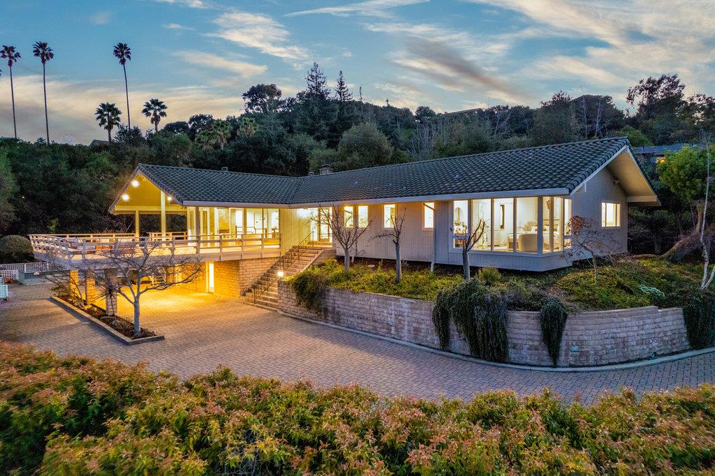 Stunning Gated Estate with Panoramic Views & Ultimate Privacy. Nestled in Saratogas lush hills, this extraordinary estate sits on nearly an acre, offering breathtaking city lights and valley views. A private gated shrub-lined interlocking brick driveway leads to a contemporary estate, surrounded by meticulously landscaped, mature plants and shrubs. Inside, experience luxury living in 4 bedrooms, 2 bath + 2 1/2 baths, plus an office (approx. 3,883 sq. ft.). The grand entry welcomes you with double French doors, a marble foyer, and coffered ceiling. Floor-to-ceiling windows in the living room showcase spectacular sunsets. The remodeled gourmet kitchen features premium appliances, a touch faucet, a BBQ grill, and a dumbwaiter, while the breakfast nook leads to a private side yard. The lower level boasts a huge pool/entertaining room with a wet bar, ice maker, dishwasher, sauna, shower, half bath, and laundry room. Other amenities include A/C, Ring security cameras, and a laundry chute. Outside lounge in an Olympic-sized sized pool surrounded by a spacious composite deck, ideal for large gatherings. In addition, there is an accessory building ideal for whatever you desire. Minutes from award-winning Saratoga schools, parks, trails, shopping, dining & freeway access.