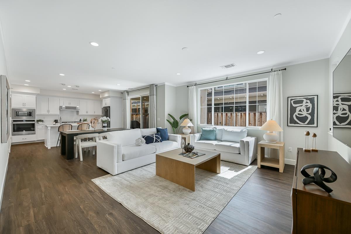 Welcome to this beautifully designed 4-bedroom, 3-bathroom home in the highly sought-after Newark Bayshores Community. Spanning 2,192 sq ft on a 3,080 sq ft lot, this home offers modern living with a spacious, open-concept layout filled with natural light and elegant wood flooring. The gourmet kitchen seamlessly connects to the family room and features sleek countertops, modern appliances, ample cabinetry, and multiple dining options, including a breakfast bar, dining area, and eat-in kitchen. The first floor includes a bedroom and full bathroom, perfect for guests or multi-generational living. Upstairs, the luxurious primary suite boasts a spa-like bath and a walk-in closet. Additional highlights include central AC & heating, multi-zone cooling, double-pane windows, and a dedicated in-home laundry room for ultimate convenience. Enjoy a private backyard, ideal for relaxing or entertaining. The home also features a 2-car garage with ample storage. The community offers a clubhouse, BBQ area, and picnic spots, providing a vibrant and welcoming environment. Prime location with easy access to Dumbarton Bridge, Hwy 880, Meta, Tesla, and other major employers. Close to parks, shopping, and local amenities. Dont miss this incredible opportunity to make this beautiful home yours today!
