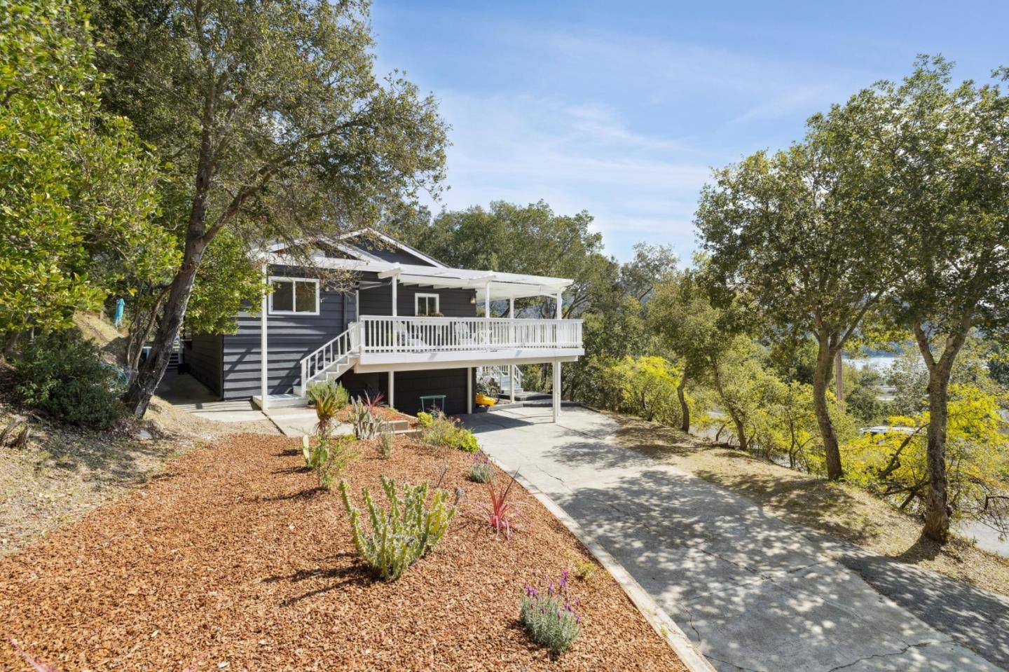 Located moments from downtown Los Gatos, this tastefully remodeled home enjoys an elevated setting on over an acre of sunny, oak studded land. A charming wraparound porch offers panoramic mountain, water and vineyard views. The open-concept interior living comprises the kitchen, dining and living area. A wall of windows floods the interior with natural light, and frames serene nature views. The bright kitchen is updated with quartz counter tops and stainless appliances, while the living area features a stacked rock gas-burning fireplace, perfect for cozy winter evenings. Primary suite with slider leading to the back deck, and beautifully remodeled bathroom with deep soaking bathtub with shower over, dual vanity with vessel sinks. Two further bedrooms and updated hall bath, plus inside laundry. Stairs down to the 2 car garage and walk-in crawl space, providing an abundance of storage. The outdoor living space and yard is exceptional. Relax on the porch and enjoy the views, or entertain on the expansive, sunny back deck. A huge grassy yard extends to a charming poultry coop, and an alternative dirt driveway ascends between the oaks to access the rear of the property. A terraced garden awaits your veggies or fruit trees. All this and Los Gatos schools, only 3 miles/5 mins to town!