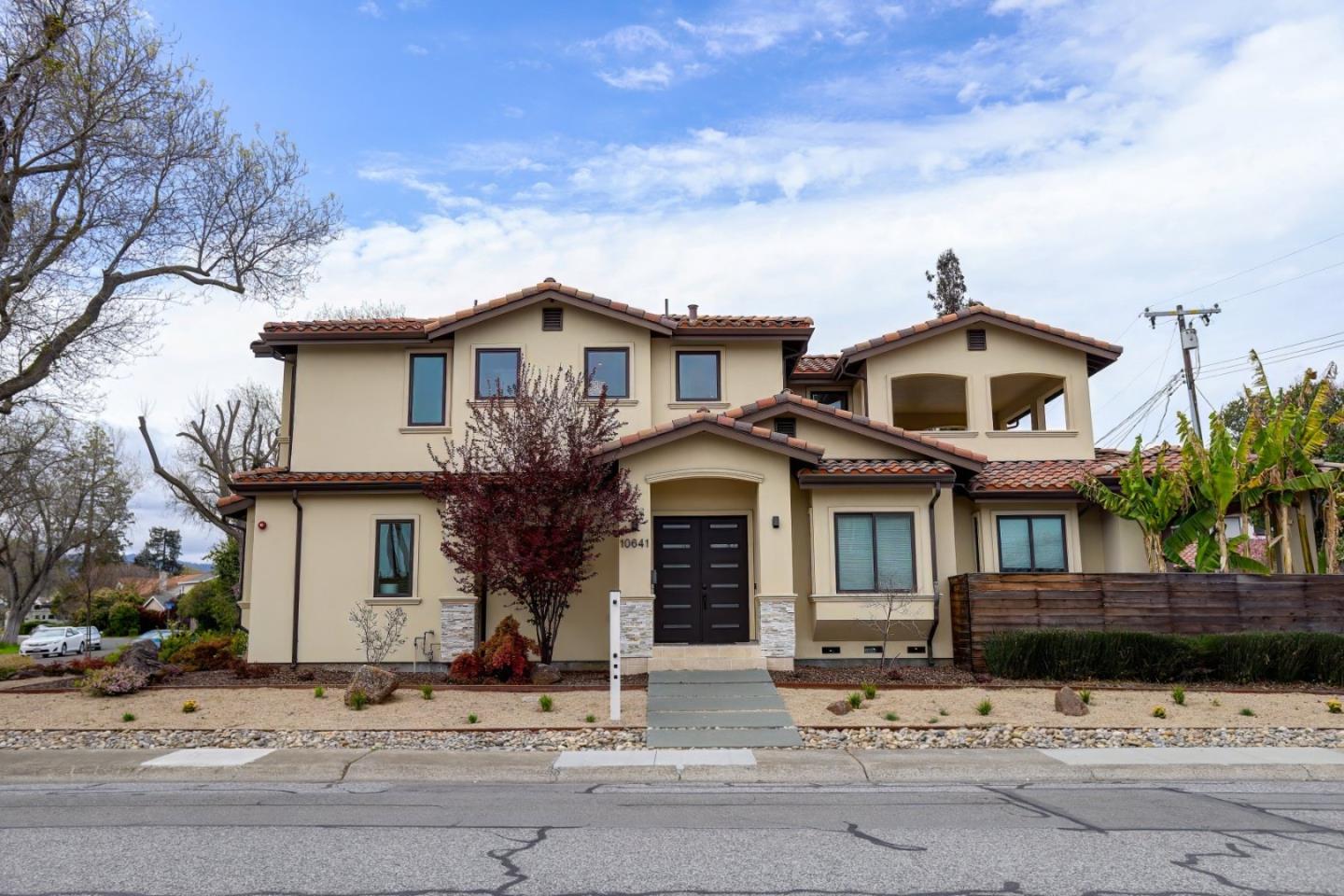 This contemporary architectural masterpiece built in 2020 in the heart of Cupertino with high-quality materials & an open floor plan. The interior showcases exquisite craftsmanship, from the graceful wooden staircase to hardwood floors throughout. The living room's high ceiling, bay window, and custom stone veneered fireplace create a serene ambiance. The chef's kitchen is a culinary haven, boasting custom cabinetry, quartz countertops, a spacious island, and high-end Thermador stainless steel appliances. Additional kitchen features include a large skylight, and well-organized pantry. The master suite serves as a private retreat, complete with a covered balcony about 350 sq ft. The bathroom features with a frameless mirror, porcelain tile, Hansgrohe fixtures and a separated tub. Modern amenities include dual-zone climate control, a tankless water heater, and a wifi connected security and smart home system. The exterior impresses with its stone porch, a huge covered back patio with about 650 sq ft, paved front and back yards. Ideally situated near top-rated Cupertino schools, the new Apple campus, and downtown Cupertino's Main Street shopping and dining. This home represents a rare combination of timeless design, modern convenience and prime location.