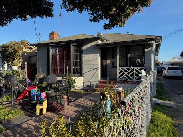 Very rare oppotunity. Great rental income for investors > $5K. 2 homes on 1 lot + huge back lot for potential ADU development and multiple parking spots. (Buyers please check with the City for ADU requirements.) Main house: 1120 sq ft; 3 Beds, 1 updated Bath and in-unit laundry. Back unit: 560 sq ft; 1 bed and 1 bath with new stove, hood, carpet & int/ paint. Both units had fresh ext. paint. Convenient location close to Hayward BART, Amtrak station and downtown. Many restaurants, stores and Southland Mall are nearby. Easy access to San Mateo Bridge/92, 880 and 238. All interiors pictures were taken before current tenants moved in. Shared driveway with 403 Smalley.