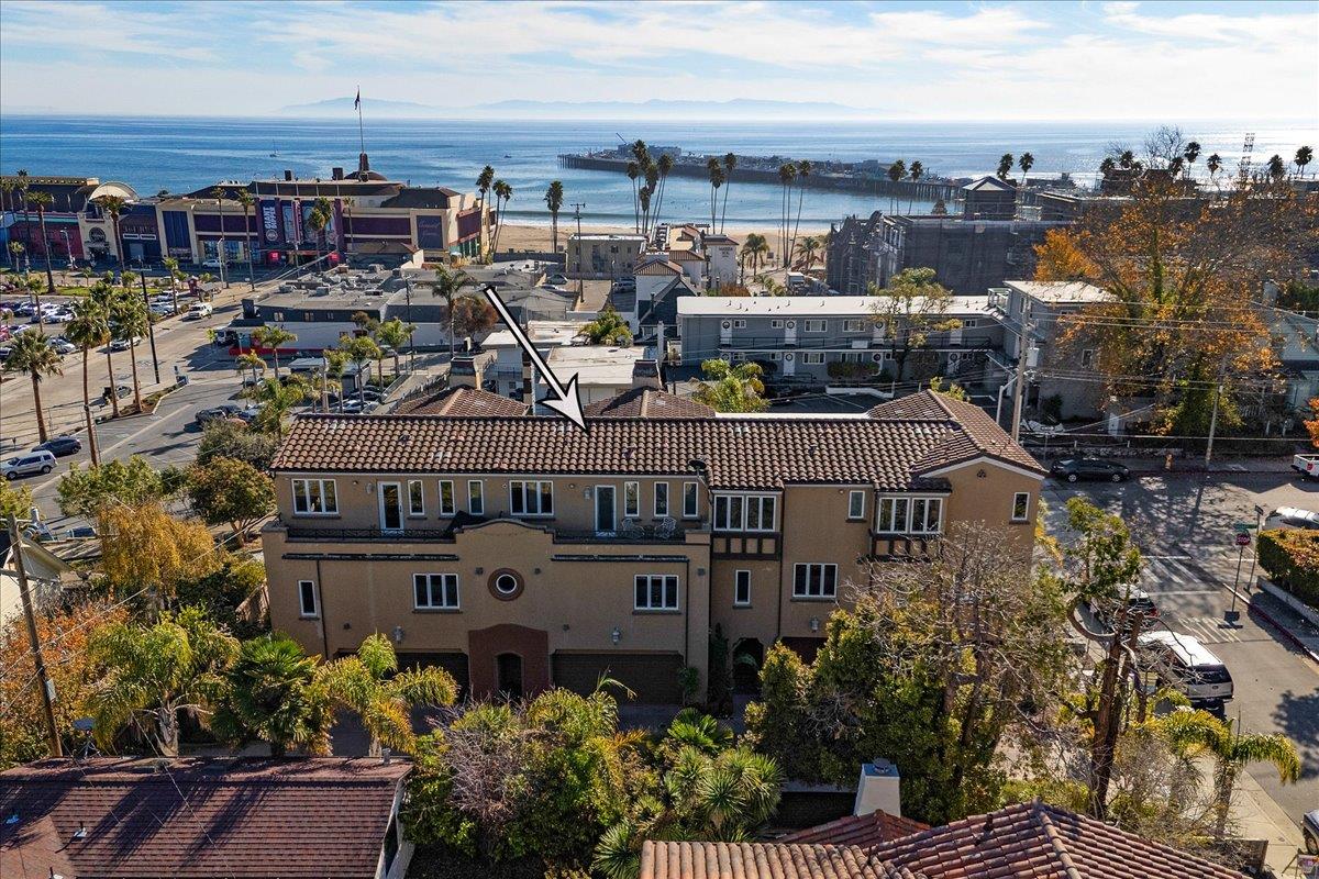 Elegant coastal living or luxury beach getaway? This is a unique opportunity for you to choose your best beachside lifestyle. This beautiful townhome, just steps from the sand, features ocean, wharf, and Boardwalk views to delight your senses and draw you outdoors. Adventure starts right at the front door whether you crave thrilling Boardwalk rides, dining on the Wharf, catching waves and rays at Cowell's Beach or a bike ride up West Cliff or down to the Harbor. The open-concept main living floor features gorgeous acacia hardwood floors, a large living area with gas fireplace and views, and a private balcony to enjoy sunsets and the ocean breeze. The cook's kitchen features generous spans of quartz countertops, custom lighting and cabinetry. Tall ceilings throughout the home paired with plenty of windows create an abundance of natural light and feeling of spaciousness. The primary suite on the third floor has its own fireplace, lovely views, a large walk-in closet, and a luxurious bath with a private mountain view balcony. The ground-floor bedroom suite with an attached bath allows for great separation of space for guests. Convenient attached two-car garage with a high-capacity electric car charger and extra storage for bikes and boards.