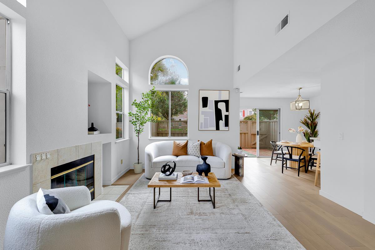 Welcome to this beautifully renovated corner-unit townhome-style condo in the heart of Silicon Valley! This bright and airy 3-bed, 3-bath home is perfectly positioned to enjoy natural light throughout the day, featuring an open-concept layout with high ceilings, large windows, and elegant finishes. The gourmet kitchen boasts quartz countertops, stainless steel appliances, and ample storage. The master suite offers vaulted ceilings, two spacious closets with a lush green view, and a luxurious ensuite bathroom with dual vanities and a modern standing shower. Additional bedrooms provide flexibility for a home office or extra space. A separate dining area opens to a private deck, and the back gate leads to beautifully maintained green spaces for relaxation. Recent upgrades in 2022 include new engineered flooring throughout, new interior paint, new interior doors, and fully remodeled bathrooms. The home includes a one-car attached garage with ample outdoor parking, and the community features great amenities like a pool, clubhouse and lush green spaces. Conveniently located near top tech companies like Google, Cisco, Oracle, and LinkedIn, and close to shopping, dining, and parks, this home is the perfect blend of comfort and convenience!