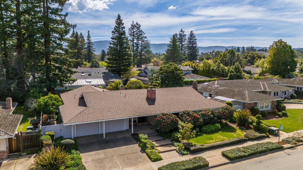 Welcome to the highly sought-after Dos Palos neighborhood in prestigious North Los Altos, where underground utility lines preserve the scenic charm, and a network of sidewalks fosters a connected community. This elegant North facing home features four bedrooms, two and a half baths, and approximately 2,752 square feet of living space on an expansive 11,102-square-foot lot. Designed for comfort and style, the interior boasts oak hardwood floors throughout the living areas and bedroom wing, spacious living and family room, each with a gas log fireplace, a generous formal dining room, and a bright eat-in kitchen. Large picture windows and French doors invite abundant natural light, while double-pane windows enhance energy efficiency. The south-facing backyard is an entertainers dream, complete with a spacious patio, a shimmering Pebble Tec pool with solar heating, and an elevated spa for year-round relaxation. Ideally located just one mile from The Village, this home is within walking distance of Santa Rita Elementary and Egan Junior High, with Los Altos High School in close proximity, making it a truly exceptional place to call home.
