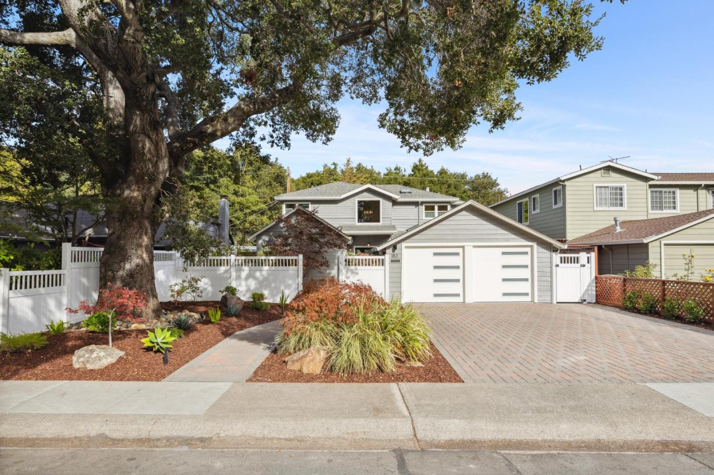 Allure begins at the curb with a lighted paver pathway winding beneath a majestic oak, past Japanese maples, boulders, and wispy grasses, leading through a private courtyard to the front porch. Natural light fills the two-story entry, showcasing elegant simplicity, quality craftsmanship, and thoughtful design. Beautifully redesigned and fully remodeled, this 4-bedroom, 3.5 bath home offers 2,352 sq. ft. of modern minimalist luxury. European white oak floors, vaulted and beamed ceilings, custom built-ins, and pristine stone finishes enhance the space. The layout includes private bedroom suites, a family/media room, a customized office, and a stunning great room with a fireplace, open dining area, and a chefs kitchen with top-tier appliances. Blending indoor-outdoor living, the serene grounds feature brick and flagstone patios, flowering vines, bamboo, camellias, and a tranquil water featureperfect for gathering with family and friends. All this, and fantastic Menlo Park schools