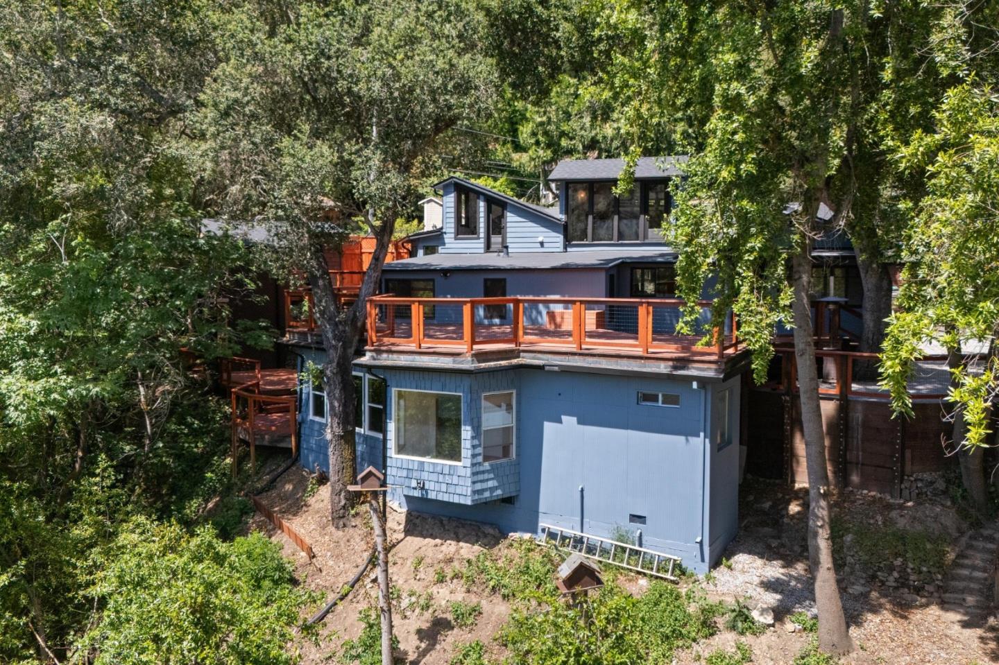 Welcome to 19940 Oakmont Drive, one of the only waterfront properties in Los Gatos! The updated main house features 3 beds and 2 baths (county records show 2 beds, 1 bath, 1,422 Sq Ft due to additions), an upgraded kitchen, vaulted ceilings, and stunning views throughout. A separate bonus room works perfectly as a guest suite, office, or studio. Multiple decks, terraces, and a private firepit make outdoor living effortless. This rare lakeside retreat includes the lot at the end of the street with the barn, adding even more possibilities to this unique offering. The expansive lot has direct beachfront access to Lexington Reservoir and belongs to award-winning Los Gatos schools. Enjoy kayaking, paddleboarding, fishing, and your own private access to the mythical Fountain of Youth! Just minutes to Downtown Los Gatos with shopping, dining, and top Silicon Valley amenities, yet tucked away in a peaceful, private lakeside setting.