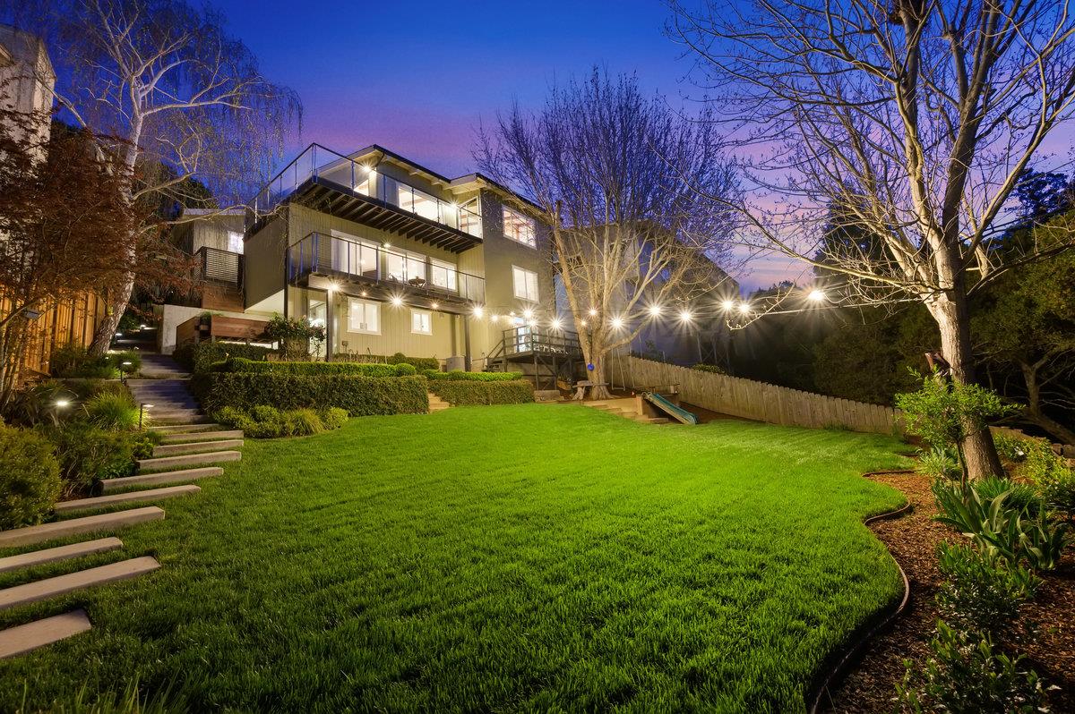 Welcome to this stunning home blending luxury, comfort, and modern convenience. Nestled on nearly half an acre, this updated 5-bed, 4-bath residence offers 3,645 sq. ft. of beautifully designed living space. The upper-level living area boasts unobstructed San Francisco views, while the property cascades to a flat backyard with a serene grove of oak trees. From the moment you arrive, you'll appreciate the thoughtful upgrades and exquisite craftsmanship. Natural light fills the open-concept spaces, complemented by two fireplaces. Modern ipe decks and bi-fold doors seamlessly connect indoor and outdoor living, perfect for entertaining. A movie room, temperature-controlled wine room, and billiards table enhance this entertainers dream. The chefs kitchen features a Sub-Zero fridge, wine fridge, 36 Wolf 6-burner range, Bosch appliances, Ventahood, and custom cabinetry. The expansive backyard offers oak trees, a zip line, swing set, slide, sandbox, Ipe decks, gas fire pits, and a waterfall feature. A fully updated in-law unit with a private entrance, kitchen, bath, and laundry adds versatility. Additional highlights: three-zone climate control, Ethernet wiring, 220V EV charger, Tesla solar (paid), and upgraded electrical. A rare gem offering luxury, convenience, and breathtaking views!