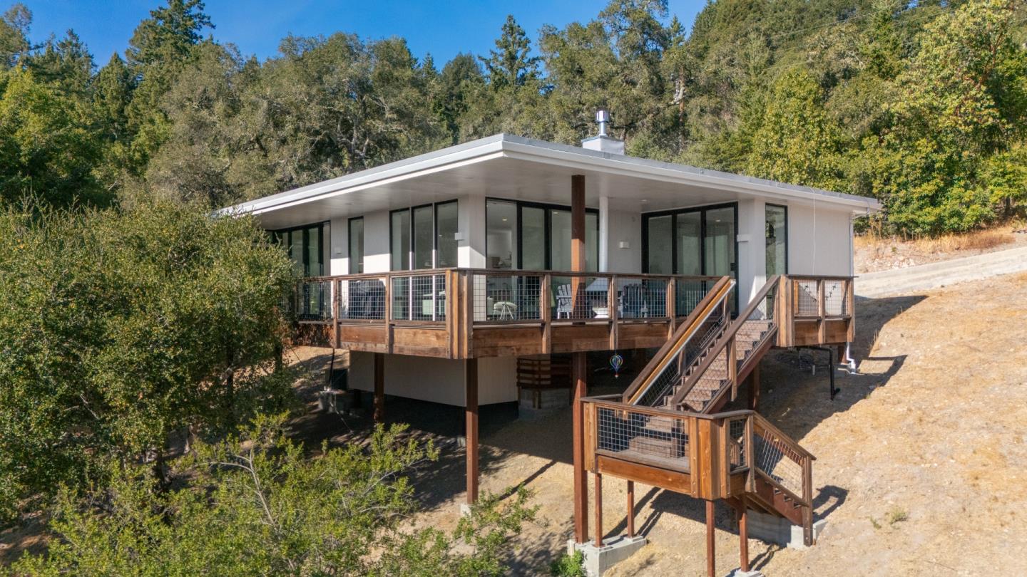 Brand new construction in the heart of Scotts Valley with breathtaking ocean and mountain views. A stunning modern retreat on over 4 acres nestled in the serene hills is complete with four bedrooms, two bathrooms with open- concept living space with walls of glass that bring the beauty of nature indoors. Amenities include thoughtfully designed layout, high ceilings, polished concrete floors, expansive decks, stunning kitchen with separate sit up island, private dog wash area, ample storage below all located just 15 minutes from Los Gatos and Silicon Valley, and only 19 minutes from the breathtaking beaches of Santa Cruz. The large primary suite providing a private sanctuary with a minimalist aesthetic and serene ambiance, perfect for relaxation. The bathrooms are modern and luxurious, highlighted by sleek finishes, double vanities, and a spa-like freestanding soaking tub in the primary bath. Together these spaces blend style and comfort, making the home ideal for peaceful retreats or everyday living. With easy access to both mountain and coastal amenities, this Scotts Valley home perfectly captures the essence of California living.