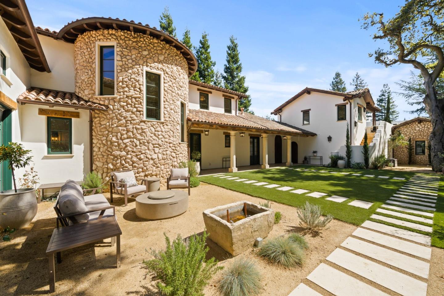 This breathtaking European-inspired property presents luxury and exceptional craftsmanship inside and out. A completely custom Mediterranean Revival-style design, the estate spans nearly 2/3 an acre at the end of one of Los Altos' most sought after residential enclaves. Recent updates include a stunning kitchen, luxurious primary bath w/steam shower, redesigned rear landscaping and fully updated basement w/in-law suite. The main house is nearly 6,000 sqft and boasts 5 bedrooms including a main-level primary suite, 3 upstairs suites including a primary suite option, a lower level bedroom and full bath. An attached 365 sqft guest house w/bedroom, bath, and full kitchen. The entrance features a custom arched wooden door leading to a Tuscan villa-style loggia w/covered walkway and limestone columns. Inside, hand-hewn beams, hand-scraped pecan wood floors, and soaring ceilings enhance the elegance.The new kitchen boasts custom cabinetry, Calacatta marble counters and backsplashes, and high-end appliances. Incredible outdoor spaces w/cabana, dual fire pits, synthetic lawn, 4 garage spaces w/EV charging. Located in highly sought-after North Los Altos, minutes from the downtown Village and top-rated schools, this property offers impeccable design for an unparalleled living experience.