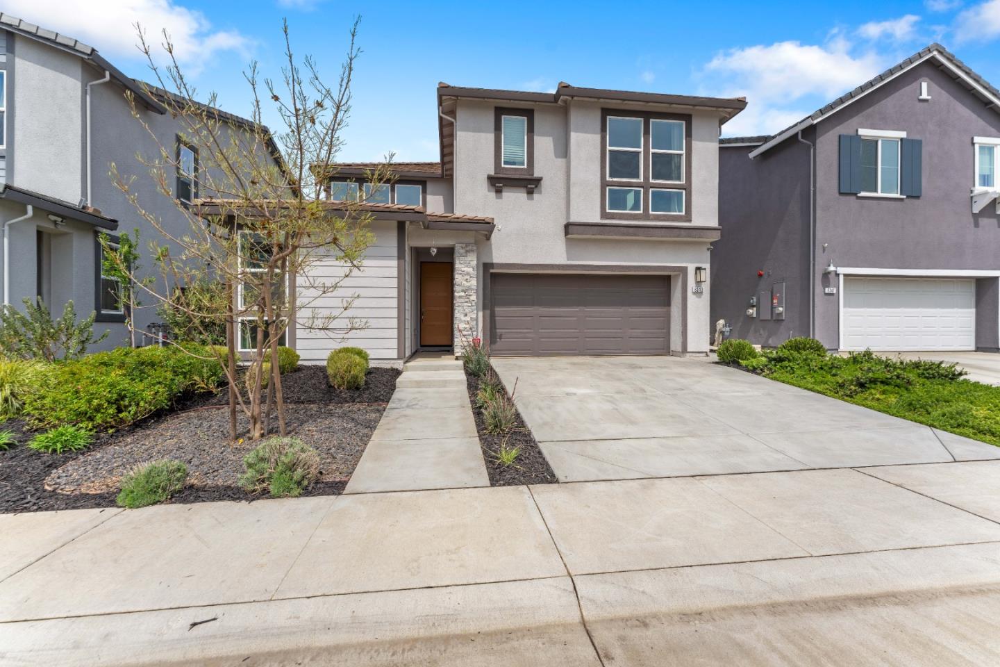 Welcome to 8243 Blue Coral Avenue, a stunning 3-bedroom, 3-bathroom single-family residence located in the desirable Elk Grove community. Built in 2022 by Tim Lewis Communities, this home offers approximately 1,891 sq ft of modern living space, featuring the latest finishes and up-to-date design elements throughout, as well as a thoughtful first-floor bedroom and full bath for single-level livability. The open-concept layout is perfect for both everyday living and entertaining, with an attached 2-car garage, Tesla charger, and solar panels. With the benefits of a newer build, the home includes energy-efficient appliances and contemporary details. The professionally finished backyard is move-in ready, providing a rare, dust-free outdoor space that can be customized to suit your needs. Located in "The Oasis" community, you'll enjoy proximity to Oasis Park, offering sports courts, a splash pad, playground, and picnic areas. Conveniently situated near shopping, dining, and entertainment options, including Costco, Trader Joes, Nordstrom Rack, and upcoming additions like Whole Foods and Yard House, all within 1-1.5 miles. Enjoy the convenience of highly-rated public schools just minutes away. This property has Mello-Roos, which supports local parks, schools, and infrastructure.