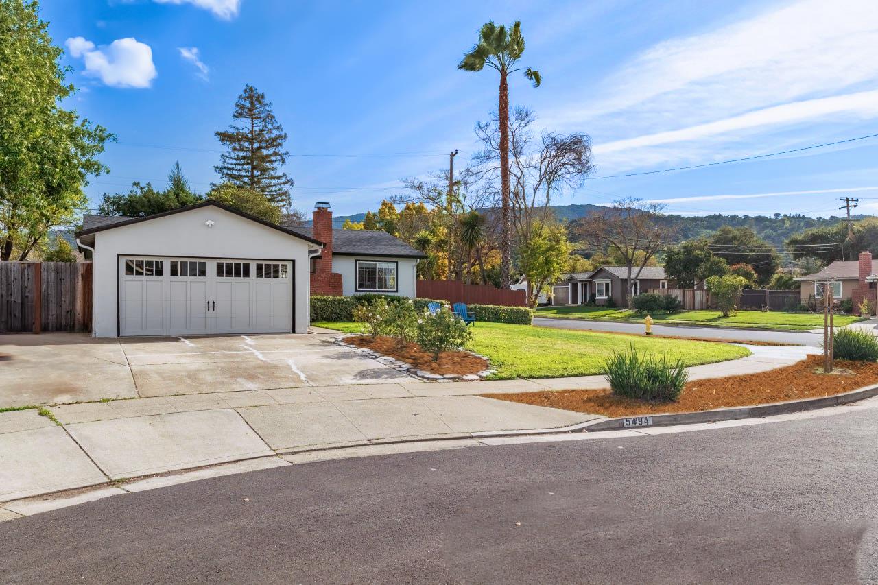 Welcome to this wonderful ranch style home situated on a quiet cul-de-sac corner lot amongst multi million dollar homes. Lots of street parking given it's premier location. Just around the corner from award winning schools. Beautiful Mountain View's within walking distance to Bel Gatos Park & Santa Rosa Trail. Close to shopping dining & coffee houses. Best commuter location with exceptionally easy access off Union Ave & Highway 85. Centrally located on a huge sunny corner lot over 8000 SF with lots of mature trees and plants including a palm, redwood tree, and fruiting avocado. There is still plenty of room for the gardener at heart. Expansion, development and ADU possibilities. Sewer and water hookups in the garage. One level with a remodeled gourmet chef's kitchen. Maple cabinets, slab granite counter tops. French doors to exterior entertaining patio for Al Fresco dining . Updated windows, tiled bathrooms, kitchen floors, central heat and a/c copper plumbing, lighting, doors, sheet rocked garage walls and ceiling, electric garage door, attic access, Newer main water line. Brand new carpeting in all bedrooms, new mirrored closet doors, window blinds, fresh interior and exterior paint, and New composition roof. Noddin Elementary, Union Middle School, and Leigh High School.