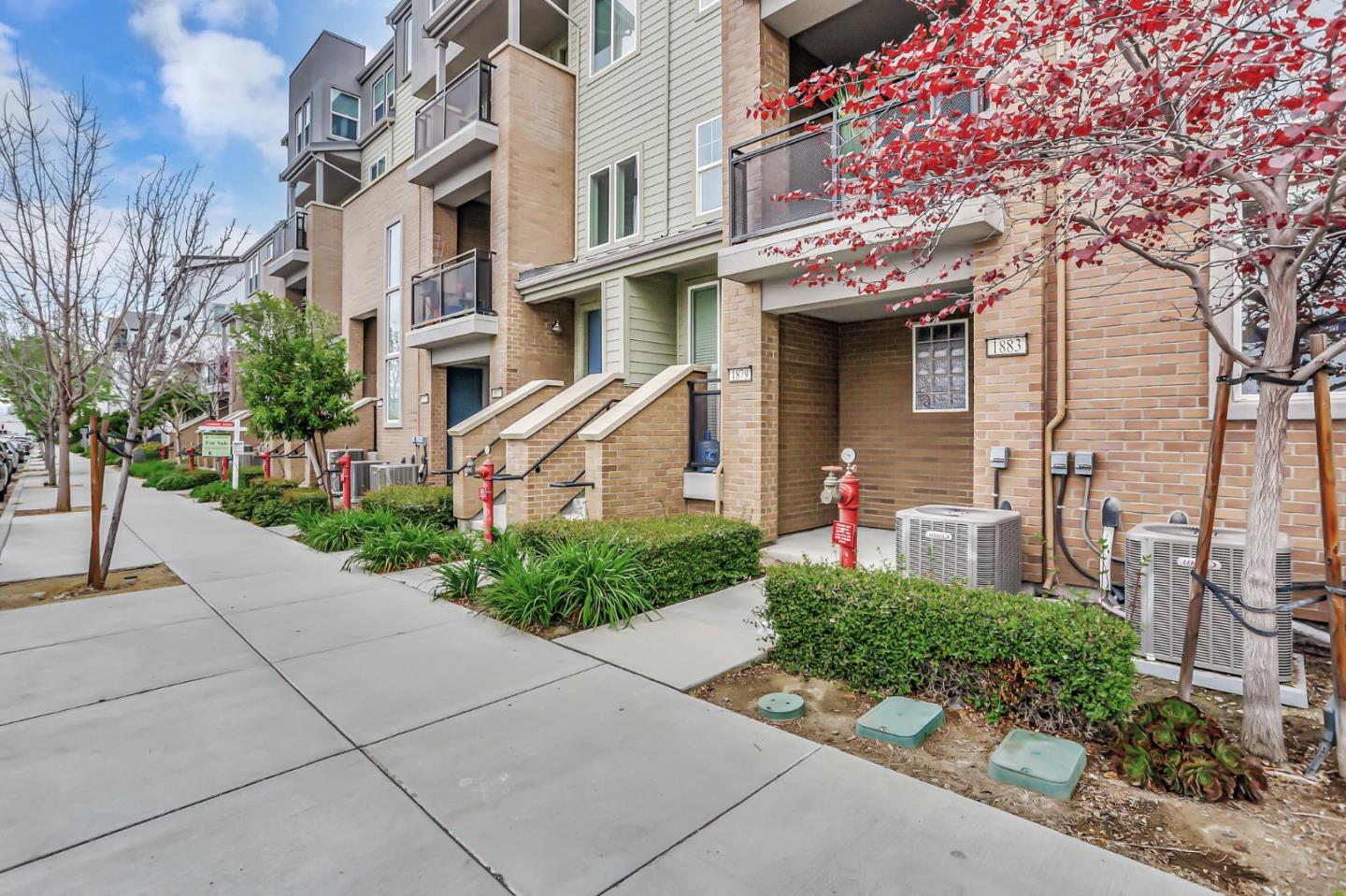 Immaculate and contemporary townhome in the desirable Onyx community. Bright and cheerful home with abundant large picture windows bringing soothing natural light. Open and functional floor plan decorated in designer's choice colors. Classy laminate floor in the living area. Large kitchen with ample dark Shaker cabinets, expansive granite counters and stainless steel appliances. Large central island with a convenient breakfast bar. Modern contemporary chandelier adorns the living area with elegance. Intimate deck from the living room, seamlessly blending indoor and outdoor living. Additional feature includes electrical car charger in the garage. Spacious master bedroom with walk-in closet. Ensuite bath with double sink vanity and large shower place. Second sunny balcony off the master bedroom with an open view. Each bedroom features a walk-in closet. Convenient and separated indoor laundry. Special features in this community include BBQ/picnic area and dog friendly park. Adjacent to the new city park Newbury Park with the variety of outdoor activities. Convenient location with short commute to downtown SJ, Japantown and shoppings including Costco, Ranch 99 & H-mart. Easy access to Bart, VTA and freeways 101/680. Walking distance to Google & Meta shuttle stops.