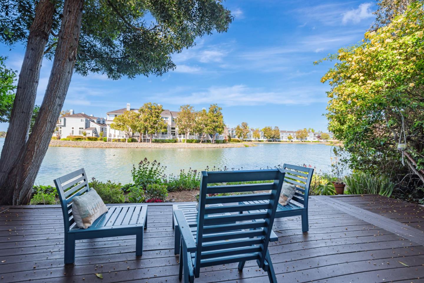 A True Escape from the Everyday! Step into resort-style living in the highly sought-after community of The Manors, where comfort meets elegance on the wide water. This sun-filled, two-story retreat captures the essence of tranquility and sophistication. A garden like entrance, leading into a spacious living room featuring a cozy wood-burning fireplace and French doors that open to a serene rear patio overlooking the water. Enjoy seamless indoor-outdoor flow with an eat-in kitchen, a formal dining room, and a luxurious primary suite complete with vaulted ceilings, a private balcony, a walk-in closet, dual vanities, a soaking tub, and a separate shower. Residents enjoy access to the community pool and scenic Redwood Shores trailsperfect for an active lifestyle. All this, just moments from top-rated schools, local parks, tech hubs, The Marketplace, the Redwood Shores Library, and scenic waterways. Welcome to your waterside sanctuary.