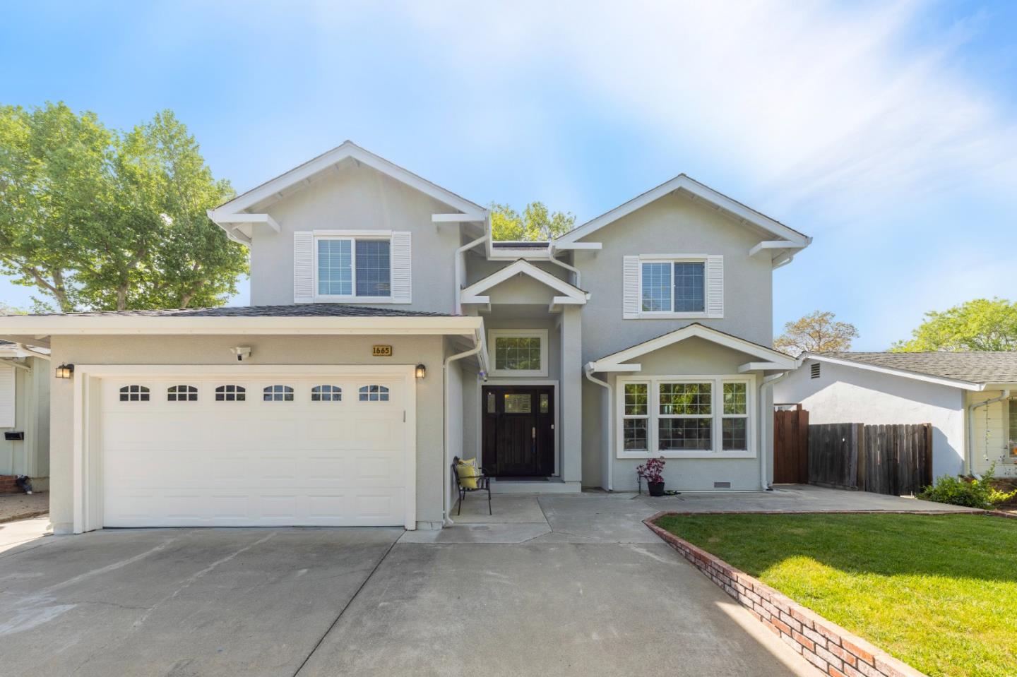 Discover this beautifully updated 5-bedroom, 3-bath home in West San Jose, located within the top-rated Lynbrook High district! Highlights include owned solar with Tesla powerwall and split-level heating and AC. Light-filled open floor plan with fresh interior paint, spacious living and dining areas-perfect for family gatherings. A separate family room with soaring ceilings and a cozy fireplace creates an inviting space to relax. The gourmet kitchen boasts newly painted cabinets, quartz countertops, high-end stainless appliances, and a large central island. A main-level guest suite with full bath offers flexibility for visitors. Upstairs, the luxurious primary suite features a private balcony, walk-in closet, and spa-like bath with dual vanities, Jacuzzi tub, and stall shower. Three additional bedrooms and a stylish hall bath complete the upper level. The backyard retreat offers a lush lawn, patio for entertaining, and a detached storage shed. Mature fruit-bearing trees: apple, plucots, pomegranate, oranges and lemon. Prime location near Calabazas Park, top schools, shops, dining, Apple, Google, Netflix & easy access to 85 & 280!