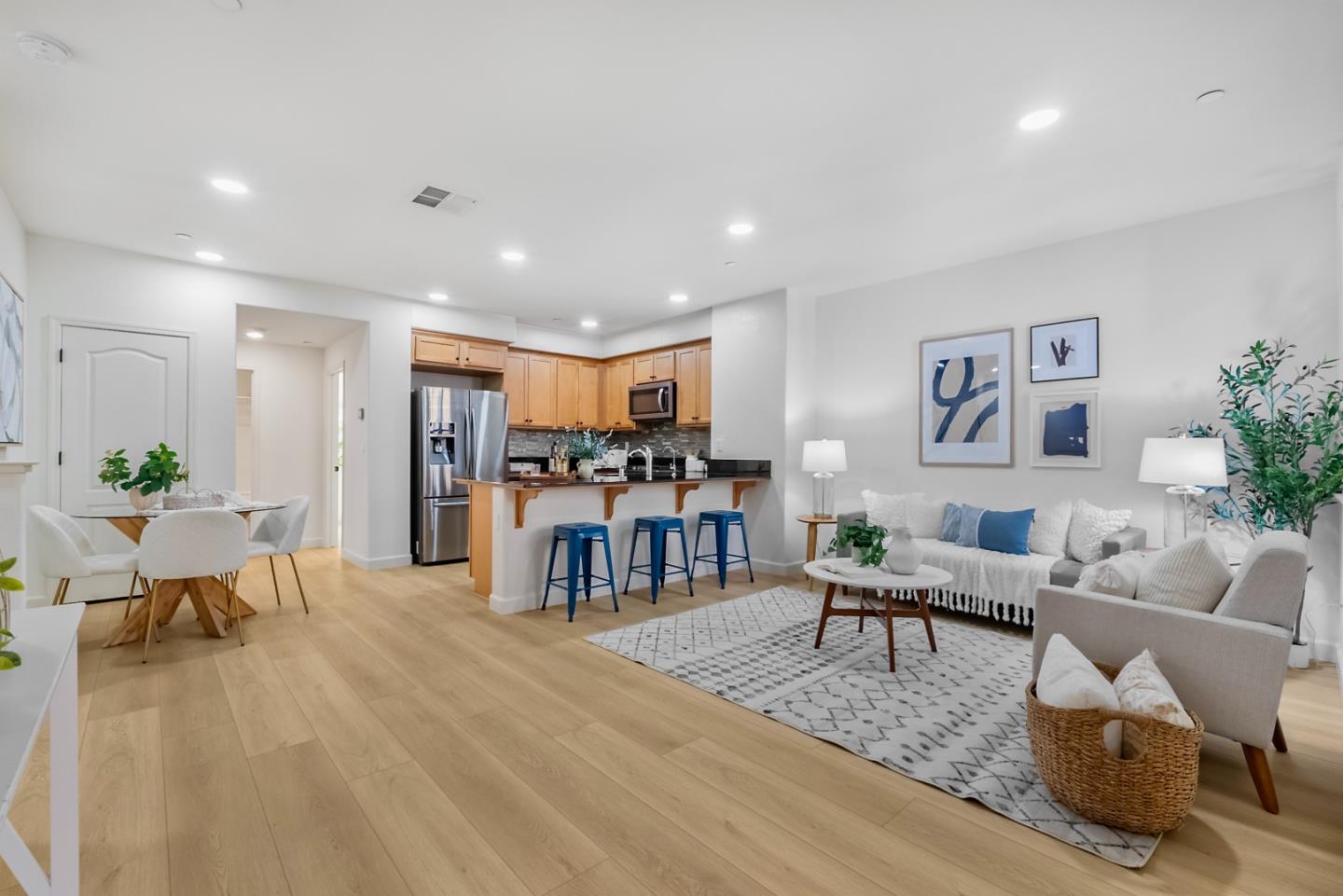 This beautifully updated home features a spacious, open-concept layout with all living areas on one level, newly updated flooring, fresh interior paint, and abundant natural light elevate the entire space. The living area connects to the private patio that provides a perfect retreat for outdoor enjoyment. The modern kitchen is designed for both style and function, featuring a large semi island, sleek cabinetry and stainless steel appliances. The expansive primary suite boasts a generous walk-in closet and dual-sink vanity. Second bedroom has its own full bathroom. Attached two-car garage provides secure parking and additional storage. Located in a highly desirable area, this home is just moments away from coffee shops, restaurants, Safeway, H Mart, Ranch 99, and Costco. Outdoor enthusiasts will appreciate the nearby Townsend Park, Mercado Park and San Jose Municipal Golf Course. Families will value proximity to the top-rated Vinci Park Elementary School (Test score 8/10 by GreatSchools). Easy access to BART and major employers like Nvidia, Google, Apple, and Supermicro makes this an ideal location for professionals.