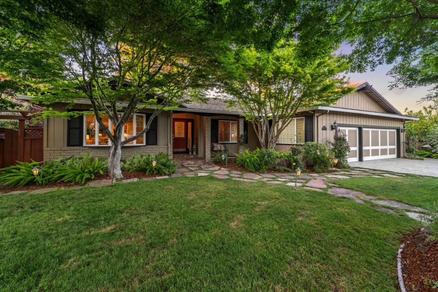 Just minutes to downtown Los Altos, lovely single story enjoys comfort, quality & top-rated Los Altos-Mountain View schools! Quality craftsmanship thru-out! Great floorplan w/ large pic windows & abundant natural light. Beautiful oak hardwood floors flow thru living spaces. Formal living rm w/ vaulted open beam ceiling & dining rm overlook beautiful front landscape thru bay window. Kitchen has striking granite countertops over custom cherry wood cabinets & marble counter on center island. Prof grade appliances include gas cooktop & Sub-Zero refrigerator, wine refrig + pantry & breakfast nook. Oversized skylight, track lighting, marble faced gas stove flanked by glass shelving in family room. Slider provides access to rear yard. Spacious primary suite has access thru slider to rear yard, ample closet space & beautiful bath w/ sep tub & oversized shower. 3 bedrooms share generous hall bath, one has built-in desk & cabinets. Inside laundry room w/ access to attached oversized 3-car garage. Tons of cabinets & attic storage in garage & 2 work benches. Mature trees & lush foliage surround solar heated sparkling pool & spa. Owned Solar for house for great energy savings! Enjoy this great location, stroll to top ranked schools! Minutes to El Camino hospital & Fortune 500 tech giants!