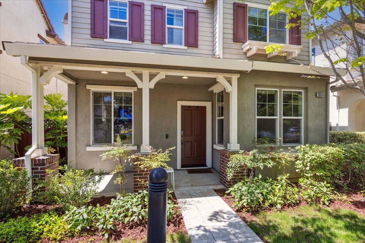 Wonderful and tranquil home in desirable and vibrant Bridgeport at Eden Shores, offering 1,945 square feet of comfortable living space, rarely available floor plan, with lots of natural light. This property features three spacious bedrooms, including a primary suite with a walk-in closet, and two other well-appointed bathrooms. The primary bathroom is equipped with double sinks, an oversized tub, and a stall shower. The kitchen is a delight, boasting granite countertops, an island, and modern appliances such as a built-in oven range, dishwasher, and refrigerator, all set for gas cooking. The home is designed for convenience and style, with amenities like high ceilings and solar power. Flooring throughout the house includes a mix of beautiful hardwood, carpet and tile, providing a warm and welcoming ambiance. Cozy up by the fireplace during cooler months. The laundry room, located on the upper floor, is practically situated and comes with a newer washer and dryer. The side Patio adjacent to the kitchen is perfect for BBQ and entertaining. Enjoy outdoor activities at the close by children's playground, Alden E. Oliver Sports Park and walking trails. Very close to shopping, Starbucks, restaurants, Costco, a movie theater and just a short distance to both 92 & 880 for your commute