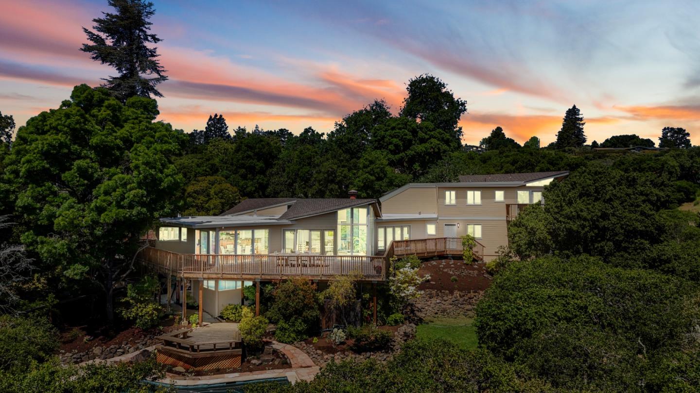 You wake up one morning on the deck of 415 Golden Oak Drive, coffee in hand, gazing at a view that makes time stand still. From this elevated perch in central Portola Valley, the South Bay unfolds rolling hills, morning mist, and the quiet promise of a perfect day. This beautifully updated 4-bedroom, 3.5-bath home offers approximately ~4,300 sq. ft. of refined living space, blending clean architectural lines, natural light, and sweeping sightlines. Set on just under two acres with lawn, pool, mature trees, and expansive decks the property is both functional and breathtaking. Inside, vaulted ceilings and large windows frame the views. The open living and dining areas flow into a thoughtfully designed kitchen with high-end appliances, custom cabinetry, and a spacious island ideal for entertaining or quiet mornings. The ~600 sq. ft. primary suite is a private retreat with a spa-like bath, walk-in closet, and a balcony perfect for stargazing or late-night talks. A separate bonus room with full bath offers flexible space for guests, work, or play. Located in the heart of Portola Valley, minutes from top-rated schools, scenic trails, and local shops, this isn't just a home its a vantage point. A place where space, calm, and style come together.