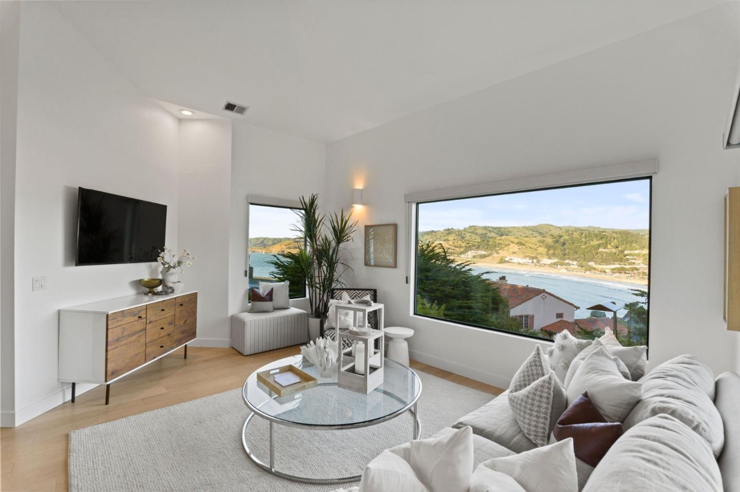 Welcome to the best neighborhood in the coastal hidden gem City of Pacifica. This reverse floor plan custom home offers a coastal living experience with its thoughtful design and desirable features. Enjoy spectacular views of Pacifica State Beach and San Pedro Headlands, as well as possible whale sightings through expansive windows. Three bedrooms and two and a half bathrooms provide flexibility for guests or office space. Enjoy cozy evenings by the gas fireplace, which adds warmth to the open-plan living space with high ceilings and unique architectural details. Enjoy socializing or reading a book on either of the two porches overlooking the sloped backyard with native plantings Included Samsung washer and dryer, are conveniently located in the 1.5-car garage, along with many storage shelves and two wetsuit hangers. Enter the kitchen right from the garage, making unloading groceries a breeze. The seller has upgraded the house with a new furnace, garage door, many windows and sliding doors, and fire-resistant, low-maintenance James Hardie Woodtone siding. Whether for your primary home or a weekend getaway, this unique home will surely charm!