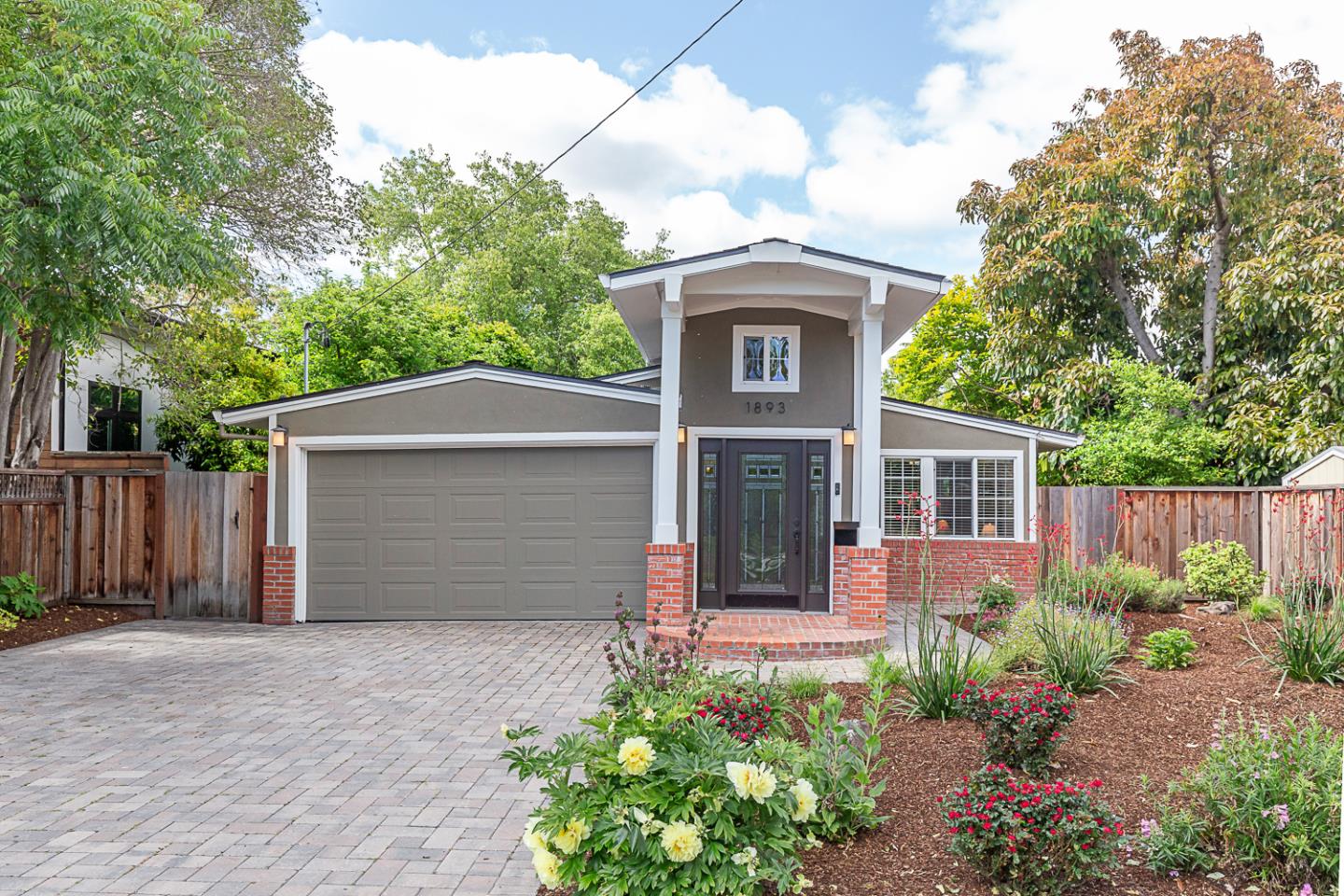 An updated, airy home with high ceilings, a neutral color palette, rich wood floors, a fabulous open-concept design, and private outdoor space. Upon entry you are met with spacious, open living spaces that sit beneath vaulted ceilings and connect seamlessly to the yard. The living room overlooks the front of the home, and the dining room enjoys a tall bay window and direct access to the kitchen for easy entertaining and functional everyday living. The granite-appointed kitchen has stainless steel appliances and a door to the pergola-covered patio. Two bedrooms have customized closets, and the primary suite is privately situated at the back of the home with a deep jetted tub and glass doors to the backyard. Outside, paver stone patios and pathways wrap around the home, and mature trees and prolific landscaping create a verdant backdrop for alfresco enjoyment. All of this, just moments from Google, commute routes, downtown Mountain View shops and restaurants, and the transit center. Excellent Mountain View schools and Los Altos High School!