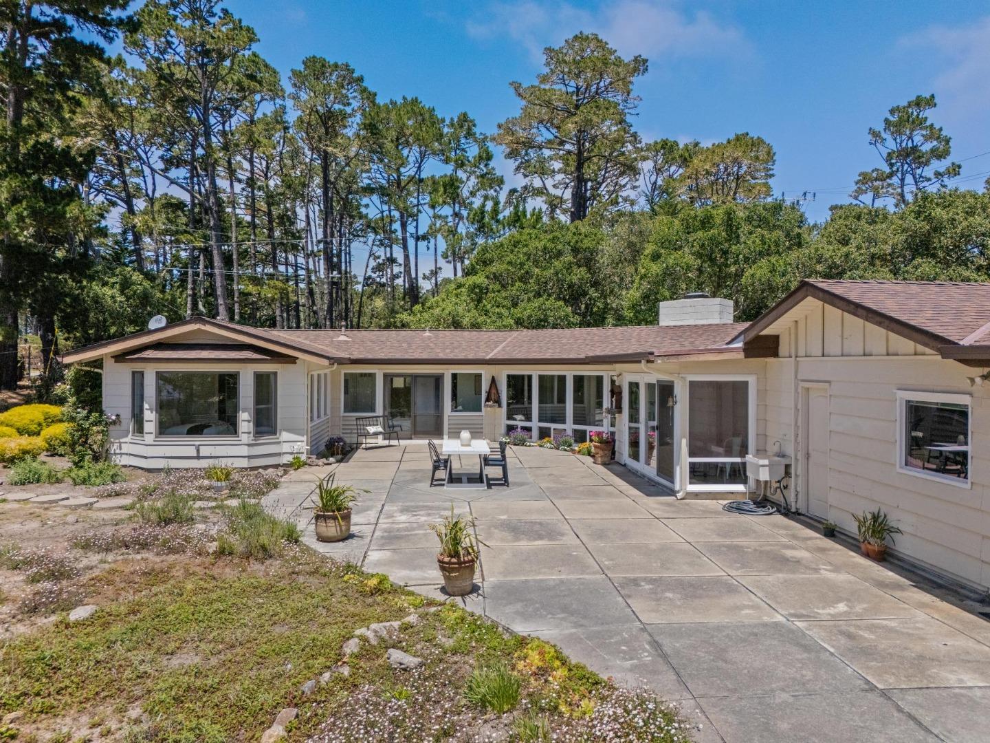 Discover 1209 Atajo Way, located within the gates of exclusive Pebble Beach, this property is nestled on a spacious flat, half-acre corner lot. A sun-filled, level lot, private, quiet and offers unexpected glimpses of the blue ocean and Carmel Beach through the majestic Monterey Pines. Cherished by the same owner for nearly five decades, this single-level ranch-style home features offers three bedrooms and two bathrooms. South-facing side is adorned with floor to ceiling windows, filling the spaces with natural light and highlighting the open beam ceiling in the main living room. A notable feature of this property is the nearly 300 sq ft detached studio, complete with a full bathroom, providing versatility and additional space. Also, a three car-garage for car enthusiasts. The location is provides great convenience, quick access to the Highway 1 gate and less than 5 minutes to the Pebble Beach Lodge and golf courses. Come bring your vision and imagination to 1209 Atajo Way, a blank canvas awaiting it's next caretaker. This home presents a unique opportunity to own a piece of Pebble Beach and the lifestyle it brings.