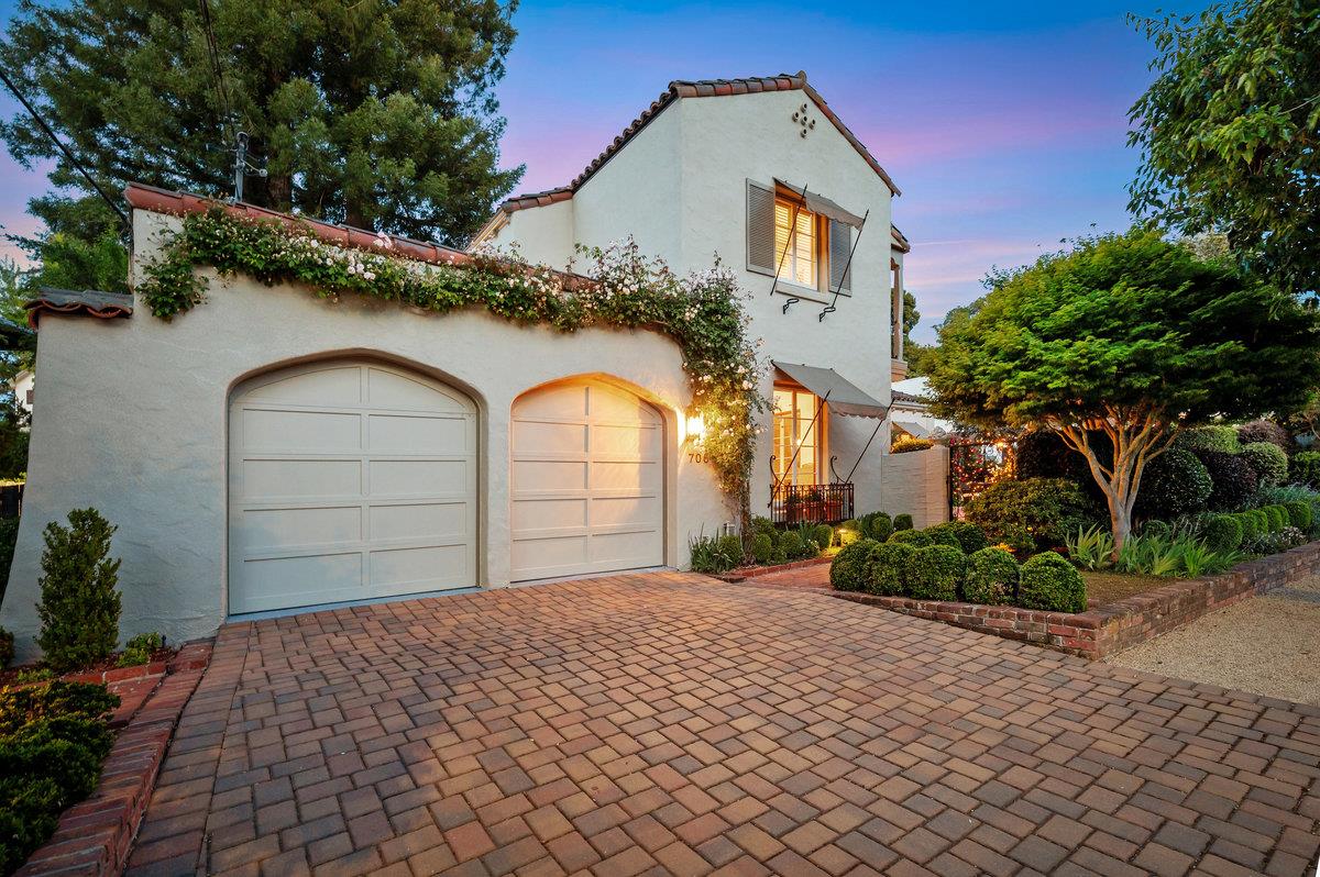 A stunning example of Spanish Mediterranean architecture, this timeless home blends old-world charm with elegant indoor-outdoor living in one of the Peninsulas most prestigious neighborhoods, San Mateo Park. Behind a lighted wrought iron gate, 706 Edgewood Road offers privacy and serenity, surrounded by lush courtyards, gardens, and patios perfect for outdoor dining, entertaining, or quiet relaxation. The thoughtfully designed floor plan creates a seamless connection between indoors and out. French doors in the living room open to front and rear courtyards, filling the home with natural light and fresh air. The oversized dining room flows to a bright kitchen and cozy family room, opening to private garden patios ideal for hosting or enjoying peaceful mornings. A ground-floor bedroom and bath are perfect for guests or a home office. Upstairs, two very large bedrooms open to oversized private balconies with treetop views, and very spacious bathroom, dressing room & an abundance of closets! Additional features: two-car garage, large finished basement with storage, central AC, and a whole-home generator. Blending timeless architecture with exceptional walkability, this home offers the best of San Mateo Park living with effortless access to Burlingame Avenues vibrant downtown!
