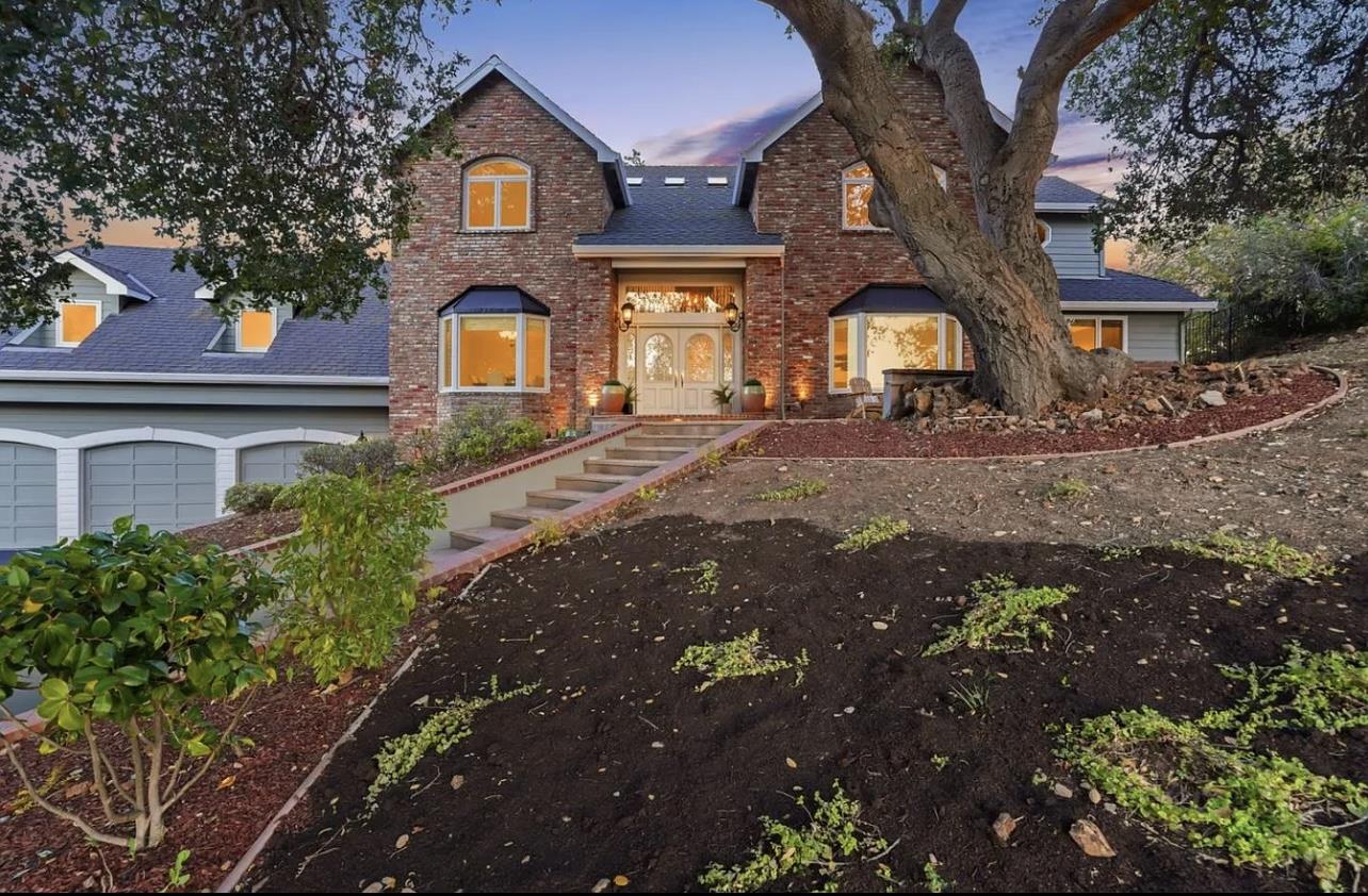 An extraordinary property with extraordinary views truly one-of-a-kind. Almaden Valley, this exceptional residence offers tranquility, privacy, and unmatched convenience. stunning sunrise vistas and sweeping views that extend far beyond the valley below. Featuring a generous limestone patio, a sparkling pool and spa, and a charming gazebo , ample guest parking and a spacious three-car garage. Inside, the home welcomes you with a grand foyer boasting soaring ceilings, hardwood flooring, and an abundance of natural light. Formal living and dining rooms overlook the sculptural beauty of mature oaks. The contemporary kitchen is a chefs dream, complete with a large center island, elegant cabinetry, a cozy breakfast nook, and a well-appointed butlers pantry. The adjacent family room is generously sized and features a wall of windows and doors that capture the breathtaking rear views. The main level includes a private suite bedroom with its own entrance ideal for guests or multi-generational living. The luxurious primary suite serves as a true retreat, offering a two-way fireplace, a spacious walk-in closet, and a spa-inspired bathroom with a soaking tub and oversized shower. Three additional guest bedrooms include another suite, and a bonus room in a separate wing.