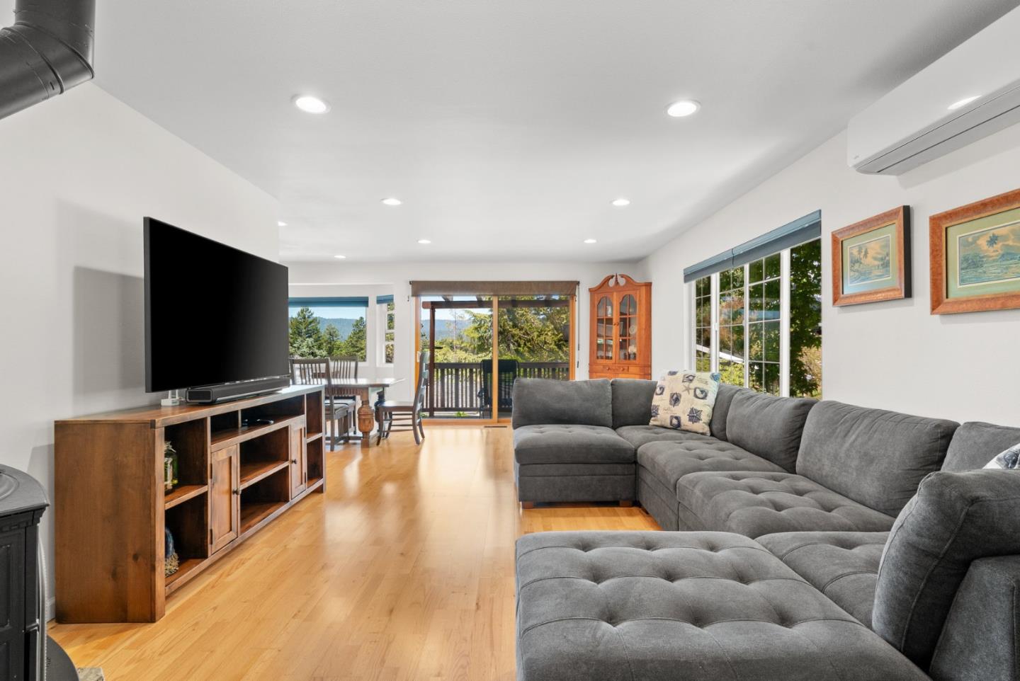 Welcome to Montevalle, a desirable 45+/55+ community where you own your land! Enjoy beautifully landscaped grounds, two lakes with ducks and koi, fairy trails, two pools, hot tubs, saunas, shuffleboard, putting green, and a Redwood Forest BBQ/picnic area. The vibrant clubhouse The Mill, features a gym, pool and ping pong tables, ceramics room, and active residents who organize events, classes, and activities like yoga, line dancing, and water aerobics. Located at the end of a quiet cul-de-sac, this 2-bed, 2-bath home with AC offers hillside views, an open floor plan, and a spacious wraparound, partially covered deck perfect for relaxing or entertaining. The enclosed rear yard is ideal for pets. The updated kitchen includes ample cabinetry with pull-outs and a nook great for an office. The primary suite opens to the private yard. A standout feature is the oversized garage with high ceilings, room for 2+ cars, a full workshop, tons of storage, and a ChargePoint EV charger which is perfect for hobbyists or anyone needing serious space. Below the home is a large storage room for tools, paint, or an extra freezer. Close to shopping, dining, and the beach.