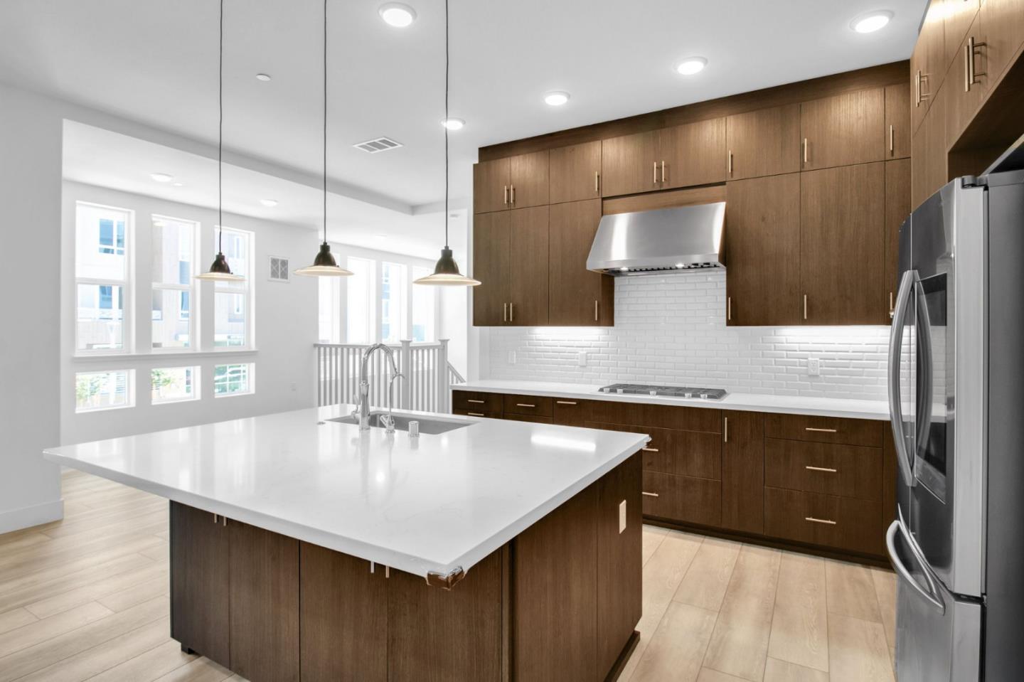 Welcome to one of the largest and most desirable R-3 floor plans at Metro Crossings, built in 2021. This bright corner unit offers an ideal layout with a full in-law suite/ADU on the main floor, complete with a private bedroom, bathroom, kitchenette, laundry, and separate entrance. Upstairs features a spacious 3 bed, 2.5 bath layout with high ceilings, recessed lighting, and abundant windows for natural light. The chefs kitchen boasts a large quartz island, gas stovetop, pantry, and modern finishes. The expansive primary suite includes a spa-like bath with soaking tub, walk-in shower, and large closet. Additional highlights include an elevator, laundry area at each level, EV-ready attached 2-car garage. Full home water softener system. Reverse osmosis water filtration system in kitchen. Luxury vinyl floors. Metro Crossings has resort-style amenities: private cabanas, BBQ areas, meeting area, and green areas. The large clubhouse is perfect for private event spaces, a fully equipped fitness center, and a huge swimming pool with Olympic lap lanes. Ideal location for work commute: near Warm Springs BART, and easy access to 680 and 880. This home redefines luxury and convenience. Move-in ready and a must-see!