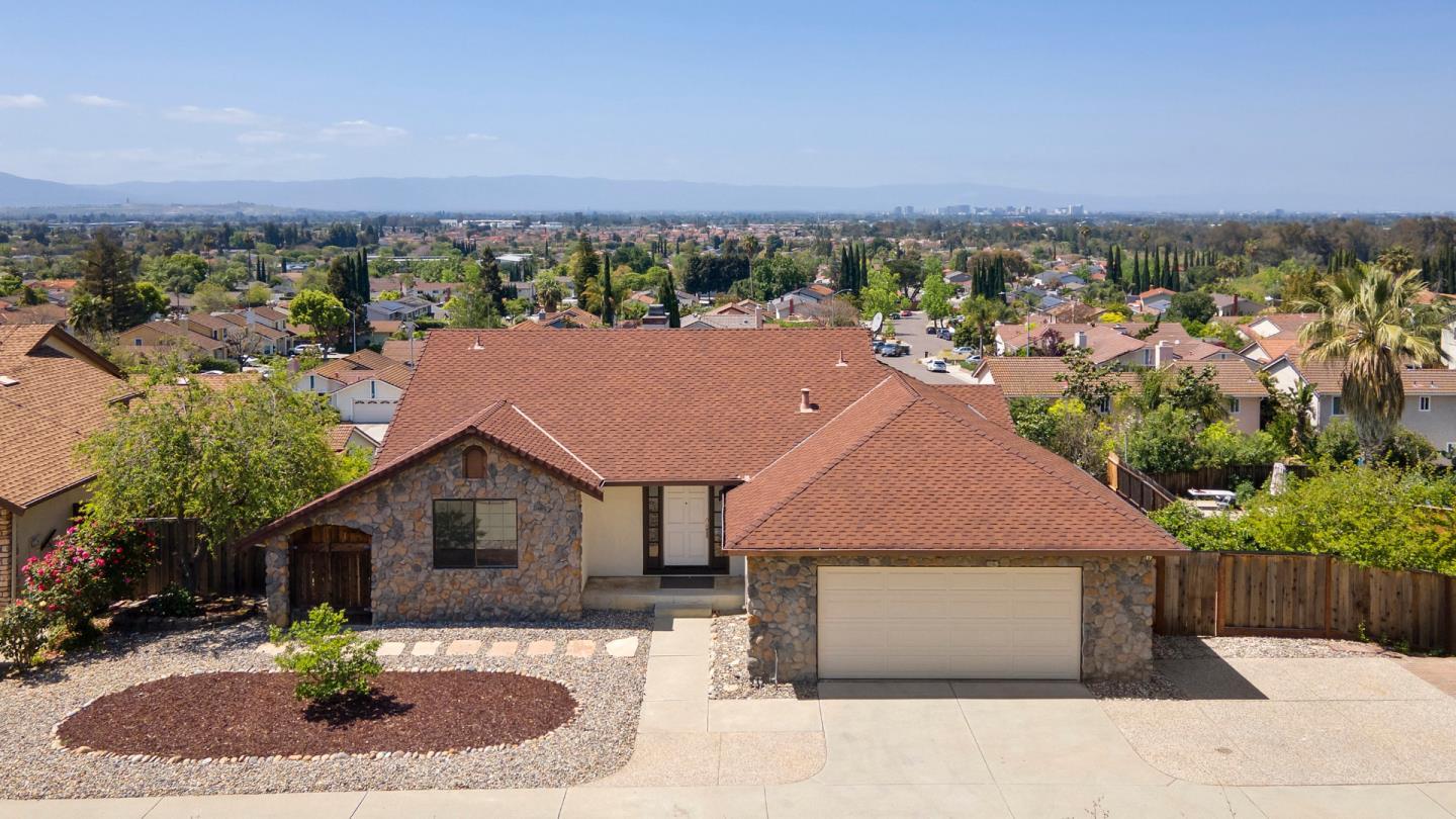 Spacious tri-level masterpiece with breathtaking panoramic views across the entire South Bay Area! This expansive home and its sun drenched 1/3+ acre meticulously landscaped lot are perfectly designed for large family living and grand seamless indoor-outdoor entertaining. The dramatic entry opens to an impressive great room featuring soaring vaulted ceilings, brick fireplace, and sparkling chandelier. Sweeping views through the glass draw you across the gleaming hardwood floors and out onto a spacious deck. You now appreciate the huge shimmering pool and spa, adjacent shaded lawn, and many thoughtfully placed patios and paths with over a dozen thriving exotic fruit trees interspersed throughout. The beautifully remodeled kitchen / eating area / family room combo boasts premium stainless steel appliances, sleek quartz countertops and windows showcasing the captivating valley vistas. Spectacular views are also enjoyed from the oversized master suite and a lower-level bedroom. Evergreen Valley High School enrollment via district transfer process. Live near schools, abundant shopping & restaurants, Cunningham Lake, CaliBunga Waterpark, Groesbeck Hill Park, and Eastridge Mall. Easy access to 101, 680, and 280 freeways makes for effortless commuting to the entire Bay Area and beyond.