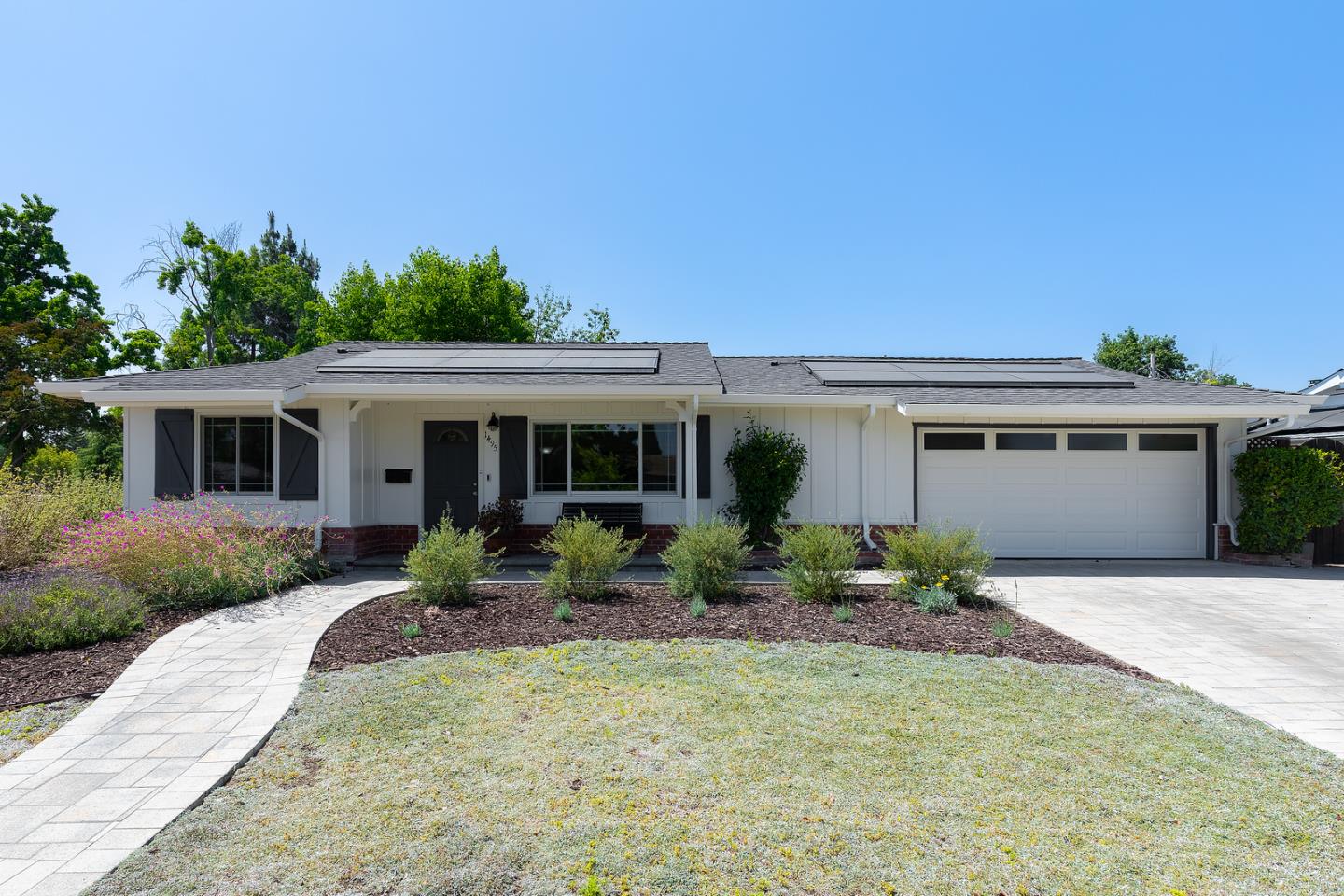 PARKSIDE CORNER PROPERTY W/ 2 PRIMARY SUITES | Nestled across from Hathway Park, this inviting home on a prime corner lot enjoys serene parkside views, extensive upgrades, and a flexible floorplan with TWO primary suites. Gathering areas trimmed with crown molding open to a courtyard-style patio overlooking the spacious backyard, perfect for indoor-outdoor ease. A pocket door reveals an office/family room, while primary suites are privately arranged at the rear the home, ideal for extended families or long-term guests. The attached two-car garage with paver drive is oversized with a storage room and space for overhead storage. Mature fruit trees and rubber flooring make the private backyard an excellent retreat for family activities. Includes a refinished kitchen, beautiful native landscaping, solar power, central AC, dual water heaters, modern lighting, luxury floors, and much more. Step over to the park while moments from shopping, dining, and entertainment at Westgate Center! Near freeways and expressways, major shopping centers, and Moreland and Campbell Union schools (buyer to verify).