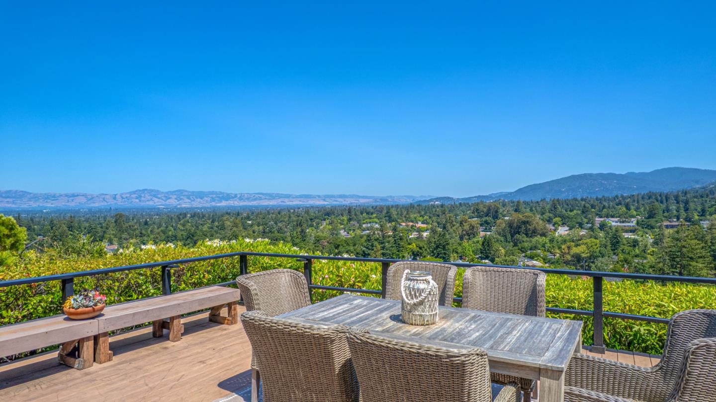 Absolutely stunning Saratoga home with breathtaking panoramic views of downtown and Silicon Valley. From the moment you enter, you're welcomed by soaring vaulted ceilings and gleaming hardwood floors that lead seamlessly to an expansive outdoor deck overlooking the hills. Spacious living room/dining room with fireplace and a wall of windows to soak in the view. The beautifully updated kitchen features granite countertops, solid wood cabinetry, and ample workspace, ideal for the discerning chef who enjoys cooking with a view. Large kitchen island with wraparound seating. Secondary seating area provides flexible use, whether as a small family room, reading nook, or casual entertaining space. Enjoy the serenity of a beautiful sunrise from your main bedroom and access to your own private deck, generous closets, and an elegantly updated en-suite bathroom. Two additional bedrooms offer flexible living options as a guest room or office. Separate laundry room. Large 2 car garage includes built-in shelving and a dedicated workspace perfect for any hobbyist or handyman. Located just minutes from charming downtown Saratoga, this stunning home is close to top-rated schools, world-class dining, shopping, and freeways all while offering peace, privacy, and the best of Saratoga living.