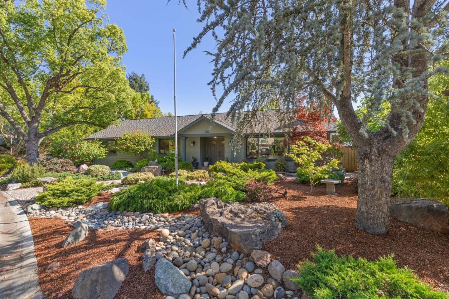 Enjoy easy and elegant California indoor-outdoor living at this beautifully updated home on a tree-lined street just minutes from downtown. With manicured curb appeal, the home features a light-filled, single-level floor plan that flows effortlessly from room to room and out to a lush backyard oasis. The design pairs crisp white trim with rich wood floors and expansive windows and glass doors that frame serene garden views. In addition to formal rooms, including a living room with fireplace and a sunny dining room, a well-appointed chefs kitchen opens to a skylit family room. Among the 4 bedrooms and 2.5 baths, the spacious primary suite stands out with a customized walk-in closet and a lovely bath. Set on a corner lot, the property is surrounded by mature shade trees, fruit trees, and multiple patios for entertaining and play. Completing this inviting picture, the home is close to shopping, hiking trails, major commute routes, and excellent local schools.