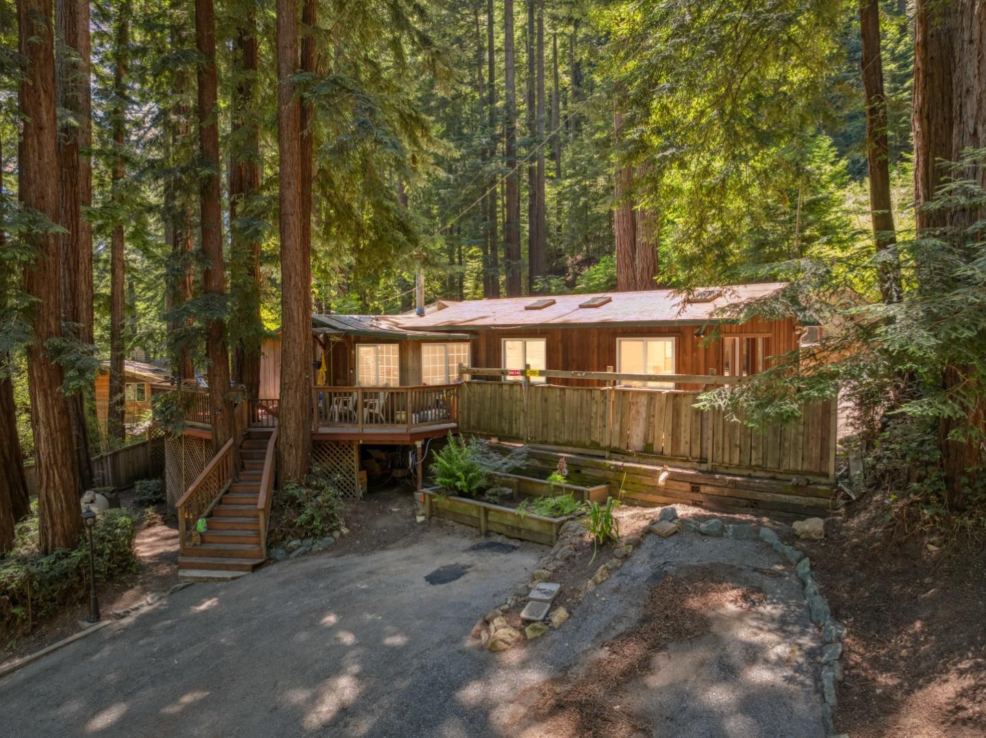 Tucked just minutes from downtown Felton, this charming mountain home offers the perfect blend of nature and convenience. Enjoy easy access to local favorites like The Grove restaurant, Wild Roots Market, world-class hiking and biking trails, and the peaceful waters of Loch Lomond Recreation Area. Plus, the beautiful beaches of Santa Cruz are just 15 minutes away. The spacious deck is ideal for summer BBQs, offering excellent views of the surrounding Redwoods. Inside, a cozy fireplace creates a warm focal point in the living room, perfect for relaxing with a good book. The open-concept kitchen overlooks the living space, so you're always part of the conversation while cooking. Skylights and large windows fill the home with natural light and frame gorgeous forest views. Almost a half an acre of land with great views. With parking for many vehicles and 2 driveways, this welcoming home is your ideal escape into the Santa Cruz Mountains.