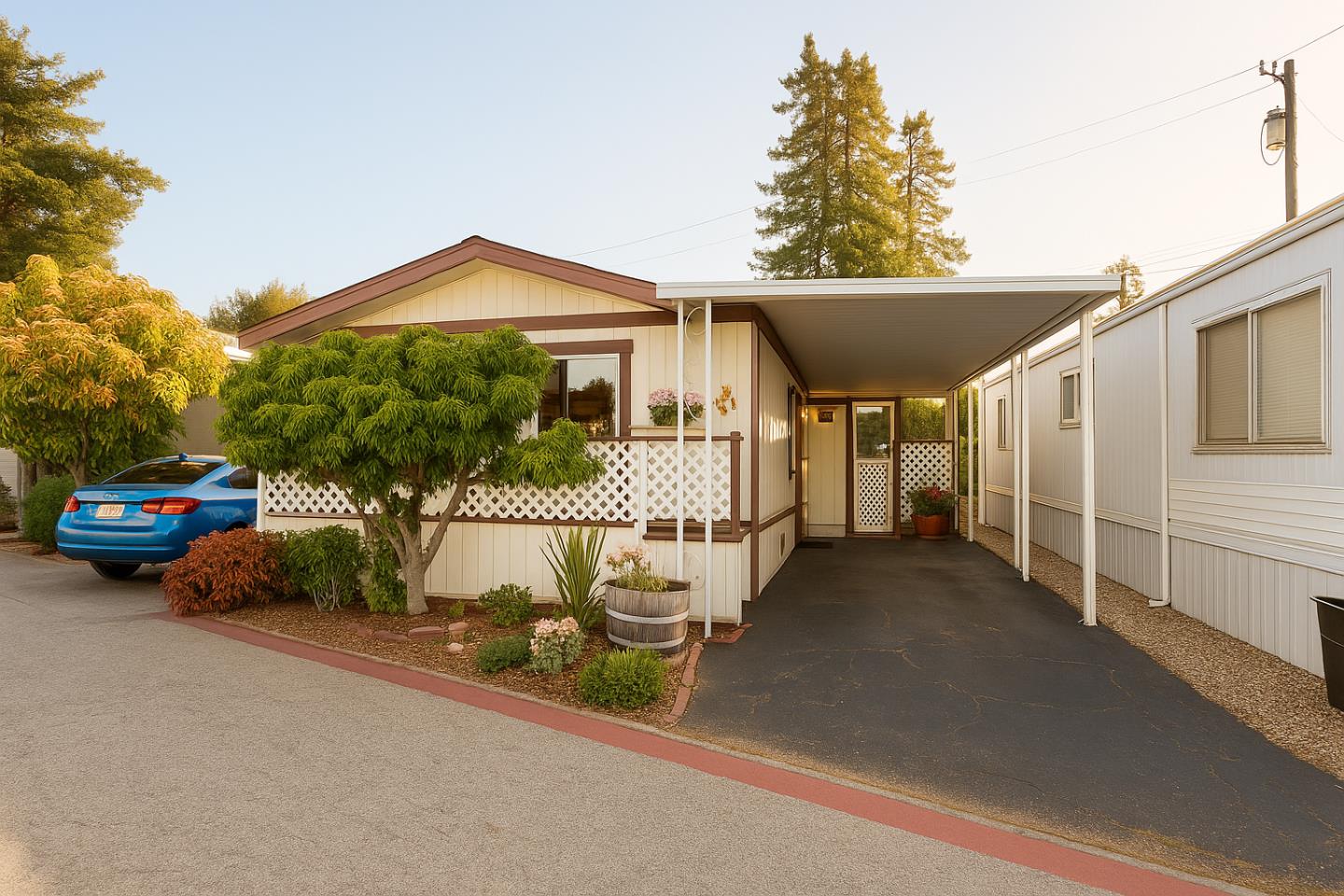 Where else can you get 880 square feet with 2-beds and 2-baths, a private outdoor deck, a workshop, and a parking spot for $220,000 in the heart of Silicon Valley? This cozy residence offers 880 square feet of living space, perfect for comfortable living. The heart of the home features a kitchen that seamlessly integrates with the family room, creating a warm and inviting atmosphere for both cooking and relaxation. The property is equipped with central forced air heating and ceiling fans for cooling, ensuring year-round comfort. Flooring throughout the home is designed for easy maintenance. One of few homes in the park with in-unit laundry, making household chores a breeze. Situated within the Mountain View Whisman School District, this home provides access to local educational facilities. With its thoughtful layout and convenient location, this Mountain View home is an excellent choice for those seeking comfort and accessibility.