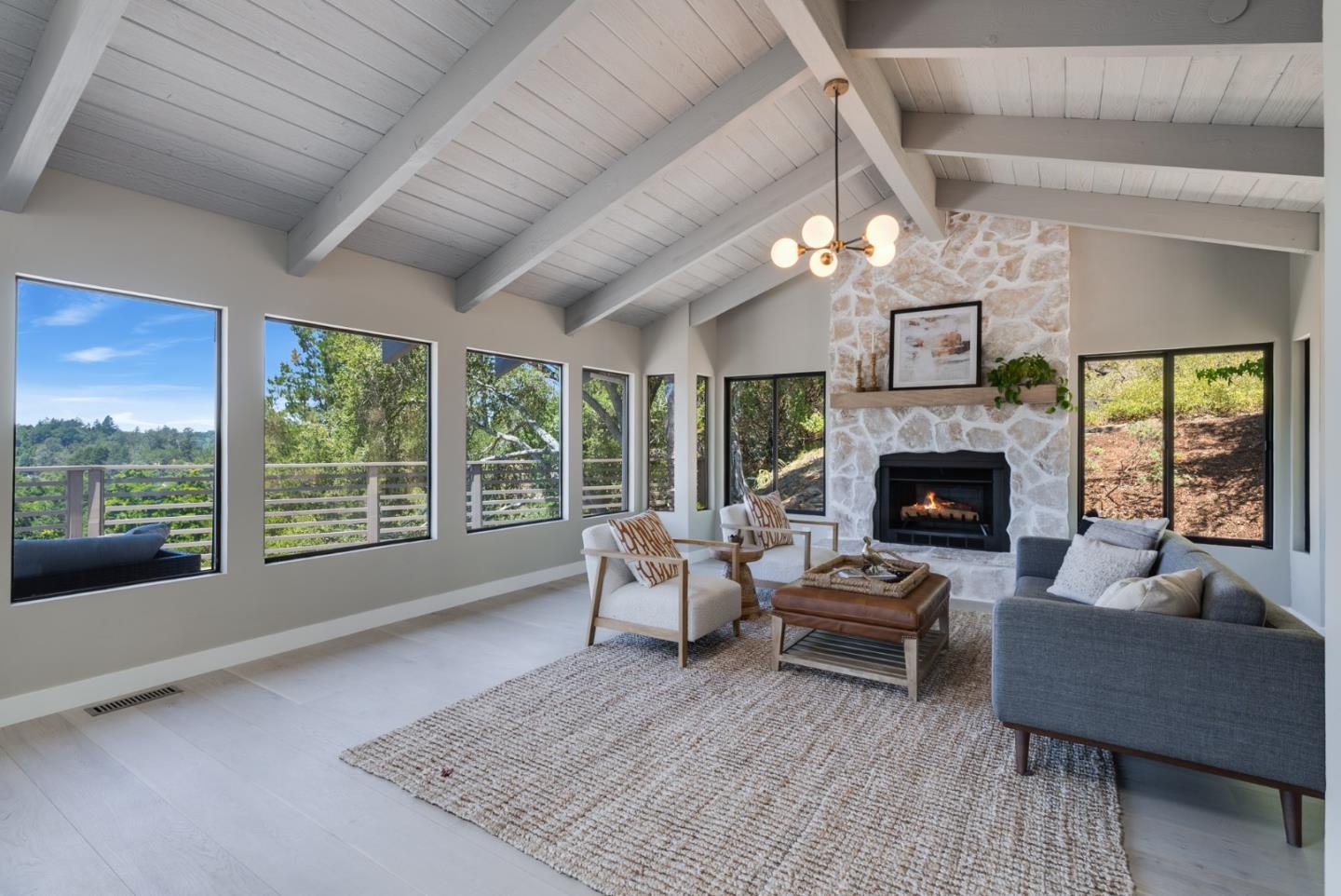 At the end of a quiet road awaits your fully renovated contemporary home providing unsurpassed privacy, ocean views, and abundant space. As you enter your private gate, panoramic views of natural scenery and the ocean immediately greet you. Along the newly repaved driveway there's tons of useable space providing endless outdoor possibilities and uses and parking for the whole family/guests. Five view decks exhibit nature scenes, the ocean, sunsets, wildlife and a bird fountain sculpture. Watch deer & quail roam the meadows! Open the front doors and a large open living space with $700k+ in upgrades abounds. A wall of picture windows appear facing the ocean view. New French doors lead you to a spacious view deck to take it in. NEW everything: hardwood floors throughout, energy efficient dual central AC/Heat system, double pane windows, custom cabinets, electrical & plumbing upgrades & more. Ground floor bedrooms and baths (including an ensuite) make it useable as a single level home. The second-floor boasts a roof top deck, huge primary bedroom suite, soaking tub with view & lounge (or office) with high ceilings and gas fireplace. Spanning 2.2 acres, there's room for an ADU, pool, horses, & RV. Minutes to Aptos Village, local beaches and vineyards. A RARE find!