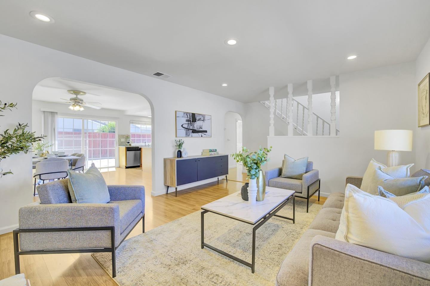 Welcome to this inviting 4-bedroom, 3-bathroom home located in the vibrant city of San Jose. With 1,936 square feet of living space, this well-maintained home offers a comfortable and functional layout. The home features a bright and expansive living room with a cozy fireplace, perfect for relaxing or entertaining. The kitchen opens to the dining area, creating a bright and airy space filled with natural light and a sense of openness. It includes a spacious primary suite and an additional bedroom on the main levelideal for multi-generational living, guests, or a home office. Upstairs, you'll find two more generously sized bedrooms and another full bathroom, providing privacy and flexibility for family living. The interior has been freshly painted, adding to the home's move-in readiness. Step outside to enjoy a spacious backyard ideal for gatherings or outdoor enjoyment, and a charming front courtyard that enhances curb appeal and provides an additional peaceful retreat.