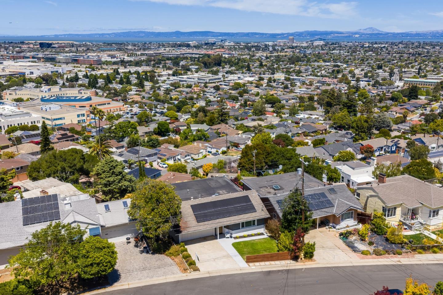 Commanding arguably the most extraordinary unobstructed bay views in all of San Mateo, this magnificent 4BR/4BA residence has been impeccably renovated to deliver a 3,580± SF immersive living experience where floor-to-ceiling vistas meet architectural sophistication. Plank and beam ceilings, oak floors, and refined moldings complement double-pane windows, skylights, and recessed lighting, illuminating integrated living spaces that flow onto a sprawling deck. Blending the warmth of natural wood with the elegance of stone, the chefs kitchen features granite countertops, custom cabinetry, premium appliances, a wine fridge, and a striking breakfast bar. Offering peaceful separation from the homes gathering areas, the main level also hosts a serene primary suite, a second bedroom, and a hall bath. Downstairs, a bedroom with a dedicated office provides the flexibility to create a luxurious secondary suite. A fourth bedroom, bonus room, and hall bath complete this floor. With its own full bath, washer/dryer, and seamless access to the newly completed backyard oasis, the lower level allows exceptional versatility, ideal for guest quarters, a family room, or a playroom. Additional highlights include solar panels, AC, and expansive storage. Unmatched, unrivaled, and unforgettable!