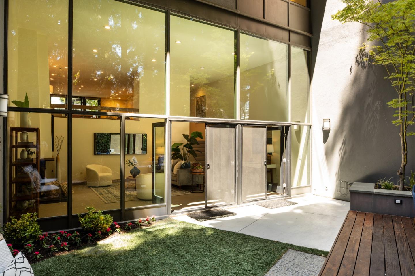 Mid-Century Warmth Meets Urban Sophistication in Menlo Parks' Park Forest Neighborhood! Floor-to-ceiling windows, sleek renovations, and a rare sense of privacy define this stylish move-in ready home nestled beneath majestic oaks and whispering redwoods. Enjoy all recent finishes including windows, doors, floors and walls. More than adequate storage space is offered in the livable garage with wall-to-wall modern cabinetry and an epoxied floor. Thoughtfully designed for indoor-outdoor living, the home features two spacious balconies, a redwood grove beyond the patio, and a stunning rear garden designed by an award-winning landscape architect. Enjoy access to a community pool, award-winning Menlo Park schools, and walkability to the new Springline development with hotspots like Che Fico, Burma Love, and Barebottle Brewing Co. Stroll to Holbrook-Palmer Park, Atherton Library, or simply relax in your forest sanctuary. Timeless design meets unbeatable location.