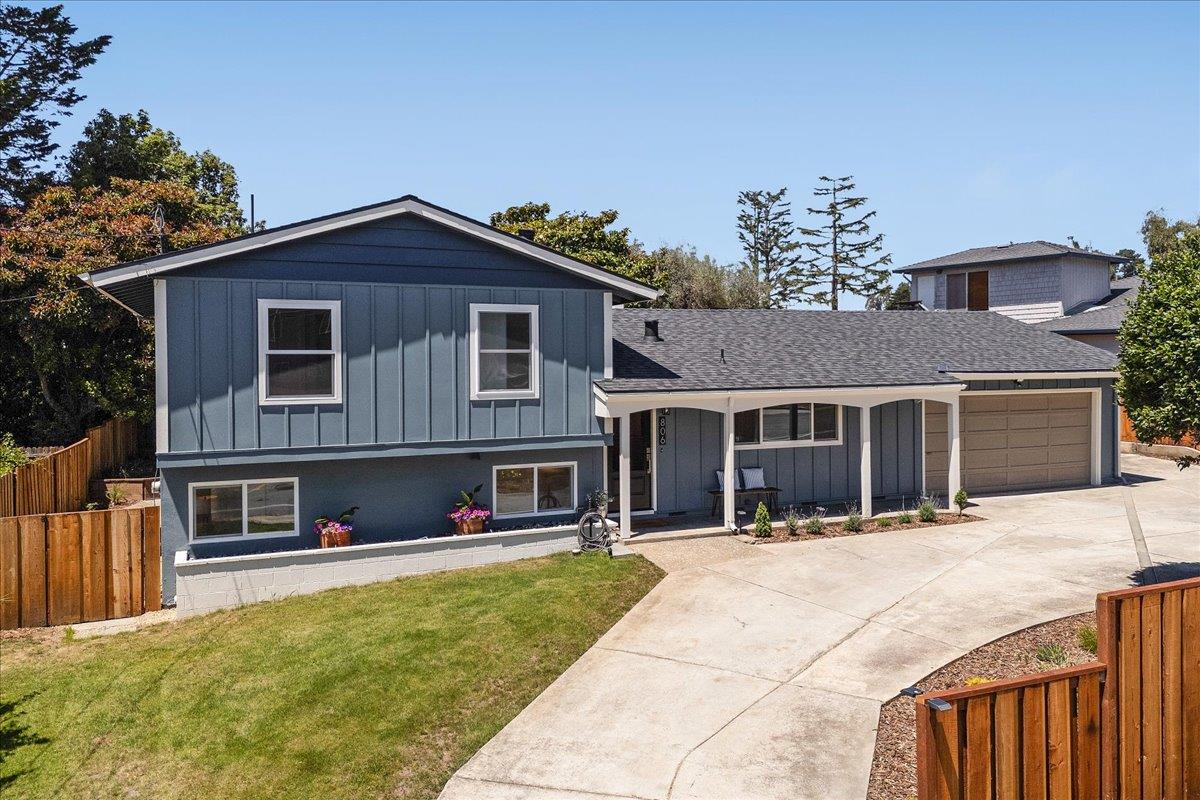 You will fall in love with this beautifully renovated, move-in-ready split-level home in the coastal part of Aptos. Designed for comfort, style, and functionality, the open-concept main level features a modern kitchen with a large island, quartz countertops, sleek finishes, and ample storage. The kitchen, dining, and living areas flow seamlessly together and open through a pair of sliding doors to a spacious, flat, sunny backyard perfect for entertaining, gardening, or relaxing in the fresh coastal air beneath the shade of a beautiful Magnolia and Olive tree. A few steps up are three bedrooms, including a peaceful primary suite, and a stylishly updated full hallway bathroom. A few steps down offers a large family room with backyard access, a fourth bedroom, and a full bathroom ideal for guests or multi-generational living. A bonus room provides flexible space for a home office, art studio, or exercise room. Recent upgrades include a new roof, new windows, hardwood floors, modern bathrooms, and recessed lighting. The expansive lot includes a circular driveway, a two-car garage, and space for a boat or RV. Take your morning or evening walks to the nearby beach or Seascape shops, and enjoy everything this vibrant Aptos neighborhood has to offer. This is coastal living at its best!
