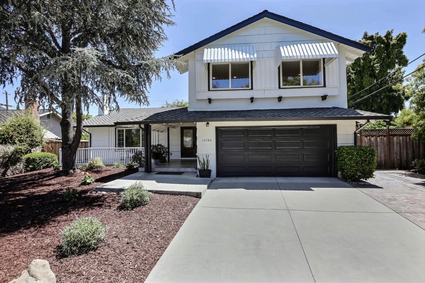 Fully renovated home in Cupertino's most desirable neighborhoods. With a brand new primary & hallway bathroom. Extra sunroom (280 SF not part of the living square footage) & a big lot offers plenty of opportunities like future ADU. Near top-ranked Eaton Elem., Lawson Middle, & Cupertino High. With easy access to Apple Infinite loop & Apple Campus, Cupertino Main Street, & major routes like hwy 280 & Lawrence Expy. Featuring double French doors & a covered front porch. Inside, is a spacious living room with brand new hardwood floors, recessed lighting, & marble fireplace. The open-concept kitchen & family room features white cabinetry, stainless steel appliances: refrigerator, cooktop, hood, microwave, oven, & dishwasher, a garden window, tile backsplash, & quartz countertops. A breakfast nook, a formal dining area & a bright family room that opens to a sunroom with skylights. The primary bedroom is spacious & newly renovated primary bathroom has, Toto washlet, frameless glass walk-in shower, freestanding soaking tub, modern double-sink vanity with quartz countertop, & LED mirror with a built-in defogger. Other bedrooms are bright with a closet. Also includes a storage room, powder room, laundry room with built-in cabinetry & epoxy floored 2-car garage. This home is a rare find.