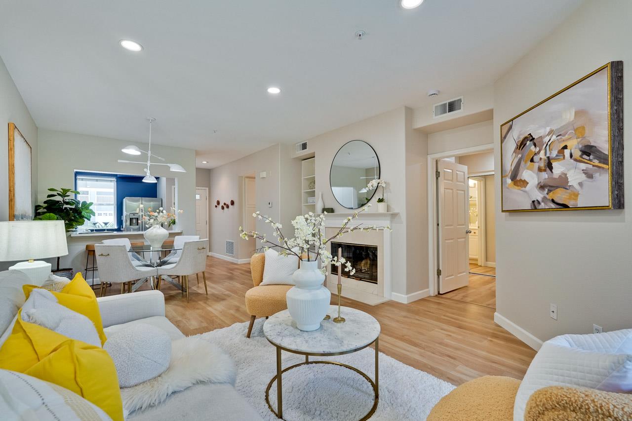 Stunning remodeled 2 bedroom, 2 bathroom ground floor unit in the prime sought-after Fairway Crest community of Sunnyvale features serene golf course views ! This home offers a spacious, open floor plan designed for contemporary living and entertaining. The living and dining room has new light fixture, recessed lights, a cozy fireplace that sets an inviting tone, a wall unit with shelves/drawers and a sliding glass door provides access to the balcony. The remodeled, functional kitchen is equipped to meet your culinary needs, offers quartz countertops, breakfast bar, stainless steel appliances, dishwasher, microwave, abundance of storage drawers and a window showcases exterior views. Enjoy the convenience of inside laundry, with a washer and dryer. Both bedrooms provide ample closet space, versatility for family, guests or a home office. Bathrooms feature new lightings, medicine cabinets, shower/tub doors, and fixtures. Amenities include : private balcony, plenty of storage space all through the unit, A/C, 1 attached garage (very convenient), a dedicated underground parking with storage room, in-ground community pool and spa, HOA covers garbage, both hot and cold water. Convenient location, close to high tech hubs, parks, shops, dining, downtown Sunnyvale, easy access to commutes.
