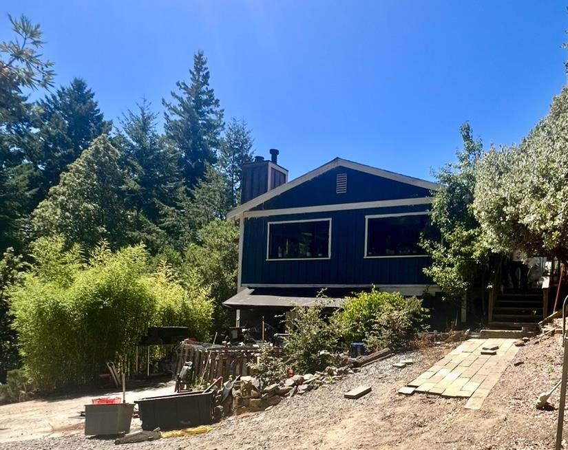 Spacious home with two en-suite bedrooms, a private deck, and a workshop. Sunny corner lot that's mostly flat. Centrally located in Bonny Doon with easy access to Santa Cruz or Felton. An excellent investment opportunity for a buyer with vision.