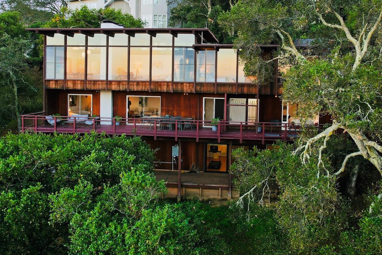 Mid-Century Modern enthusiasts will delight in this one of a kind architectural gem. Designed by architect Alan Blair, this home boasts three levels of blissful views reaching from San Francisco to Santa Clara. A host's dream! Tucked away from the flats, this stunning retreat is quiet and private. The home boasts three large decks, a hot tub, two gas fireplaces, an expansive remodeled lower level and two Tesla chargers in the garage, five bedrooms and three and a half bathrooms, an office upstairs and two living areas. The dining room contains Herman Miller light fixtures and high ceilings meet walls of expansive glass to thrill and entertain guests. Come claim this magical home that some have said has the best views in the Silicon Valley and experience all that this great community of Ladera offers.